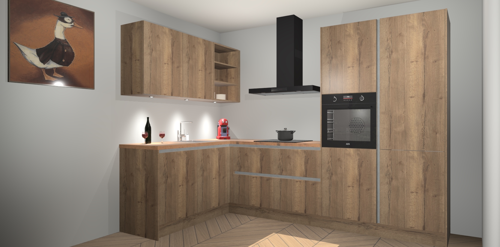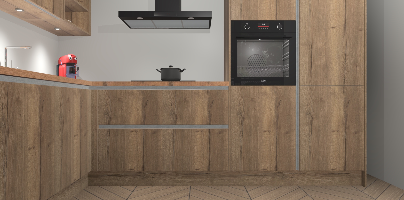 De Chocolade Eiken greeploze keuken Cognac is een adembenemend ontwerp met een modern en tijdloos uiterlijk. Deze luxe keuken straalt echt aristocratisch uit, waardoor uw koken plezieriger zal worden! Het prachtige design begint bij de hoekkeuken, wat perfect past bij elk type interieur. Bovendien bevat deze hoogwaardige set vijf inbouwapparaten - van oven tot koelkast - die via bestelling naar AEG geüpgraded kunnen worden!