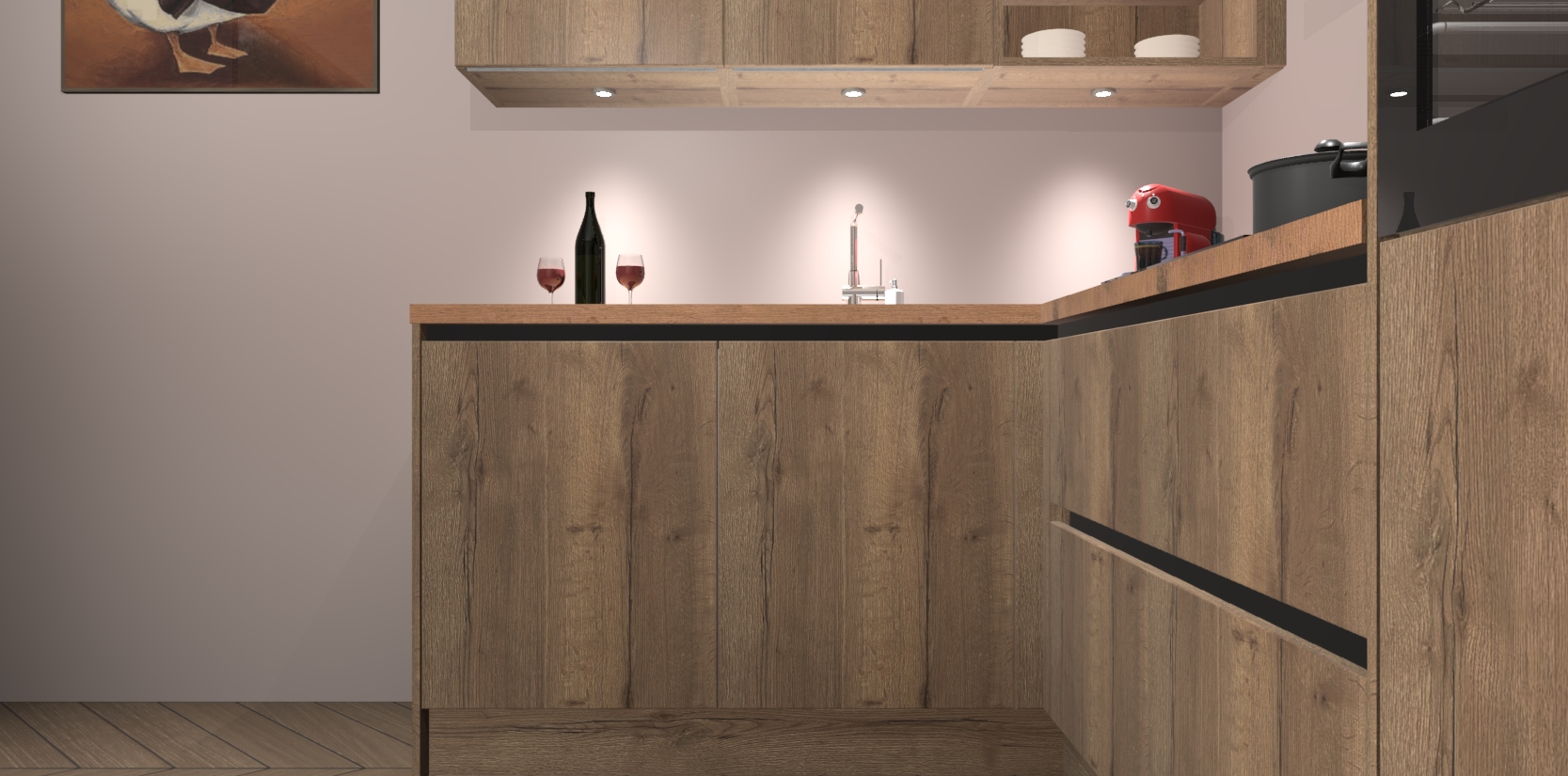 - Bij een hoekwerkblad zijn de hoeken in gevreesd en op maat gemaakt