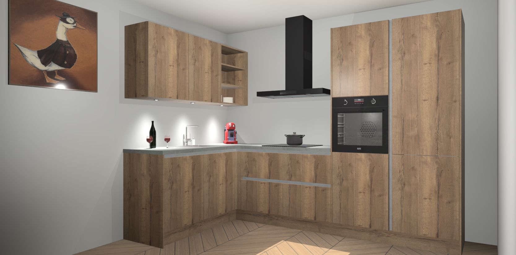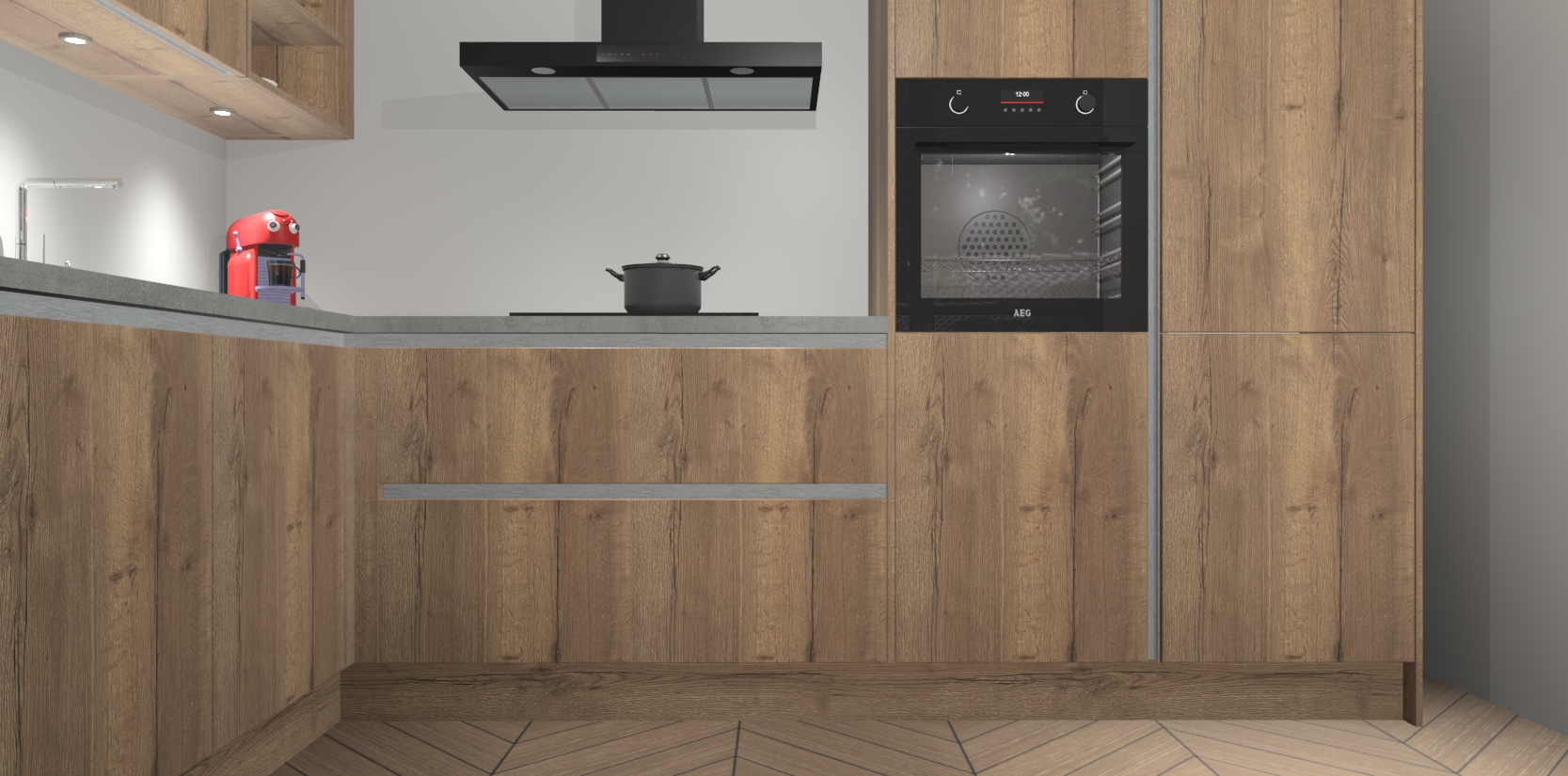 De Chocolade Eiken greeploze keuken Cognac is een adembenemend ontwerp met een modern en tijdloos uiterlijk. Deze luxe keuken straalt echt aristocratisch uit, waardoor uw koken plezieriger zal worden! Het prachtige design begint bij de hoekkeuken, wat perfect past bij elk type interieur. Bovendien bevat deze hoogwaardige set vijf inbouwapparaten - van oven tot koelkast - die via bestelling naar AEG geüpgraded kunnen worden!