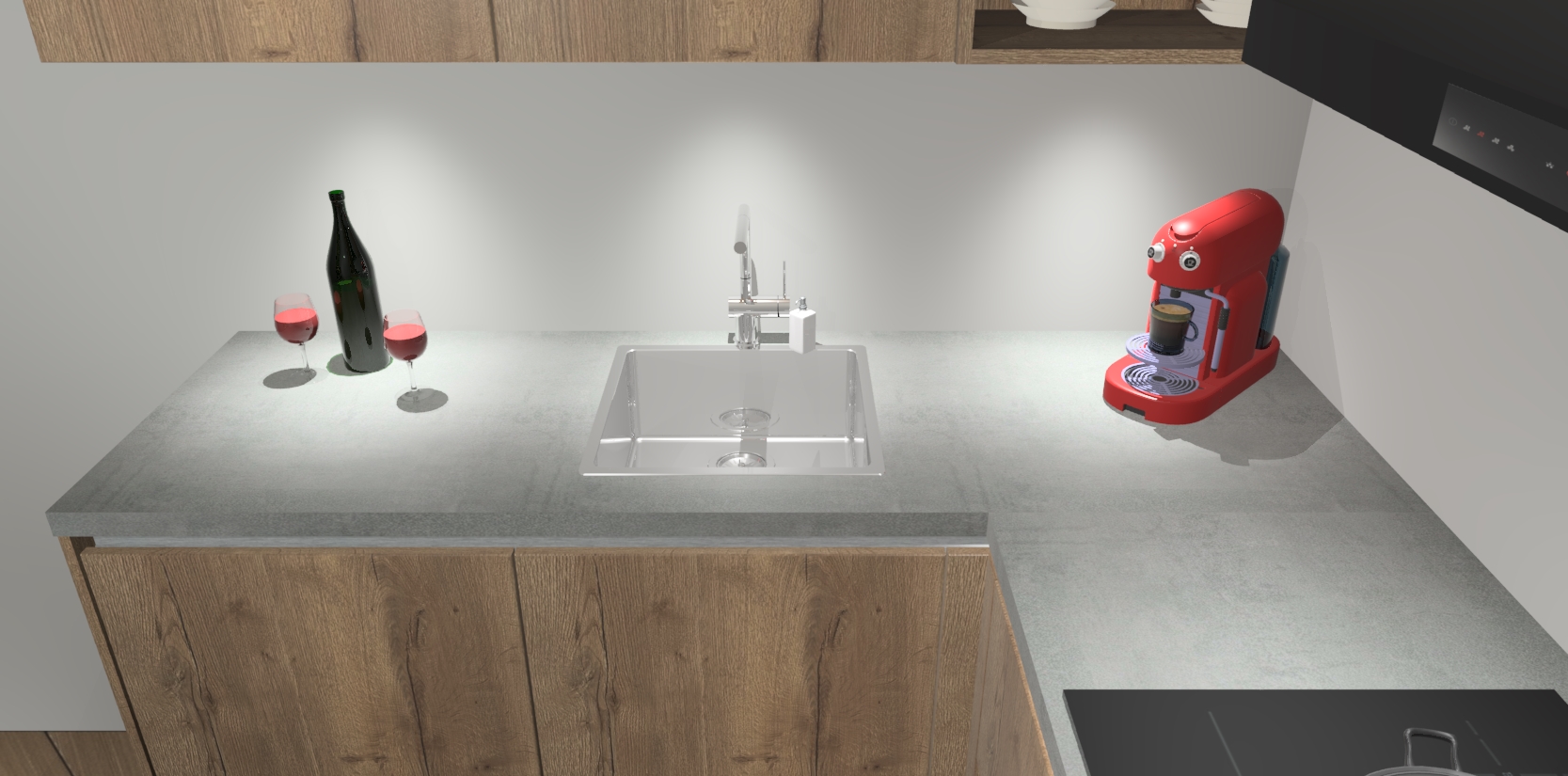 - Bij een hoekwerkblad zijn de hoeken in gevreesd en op maat gemaakt