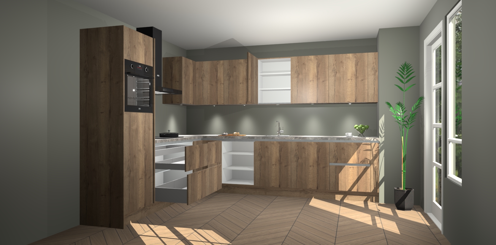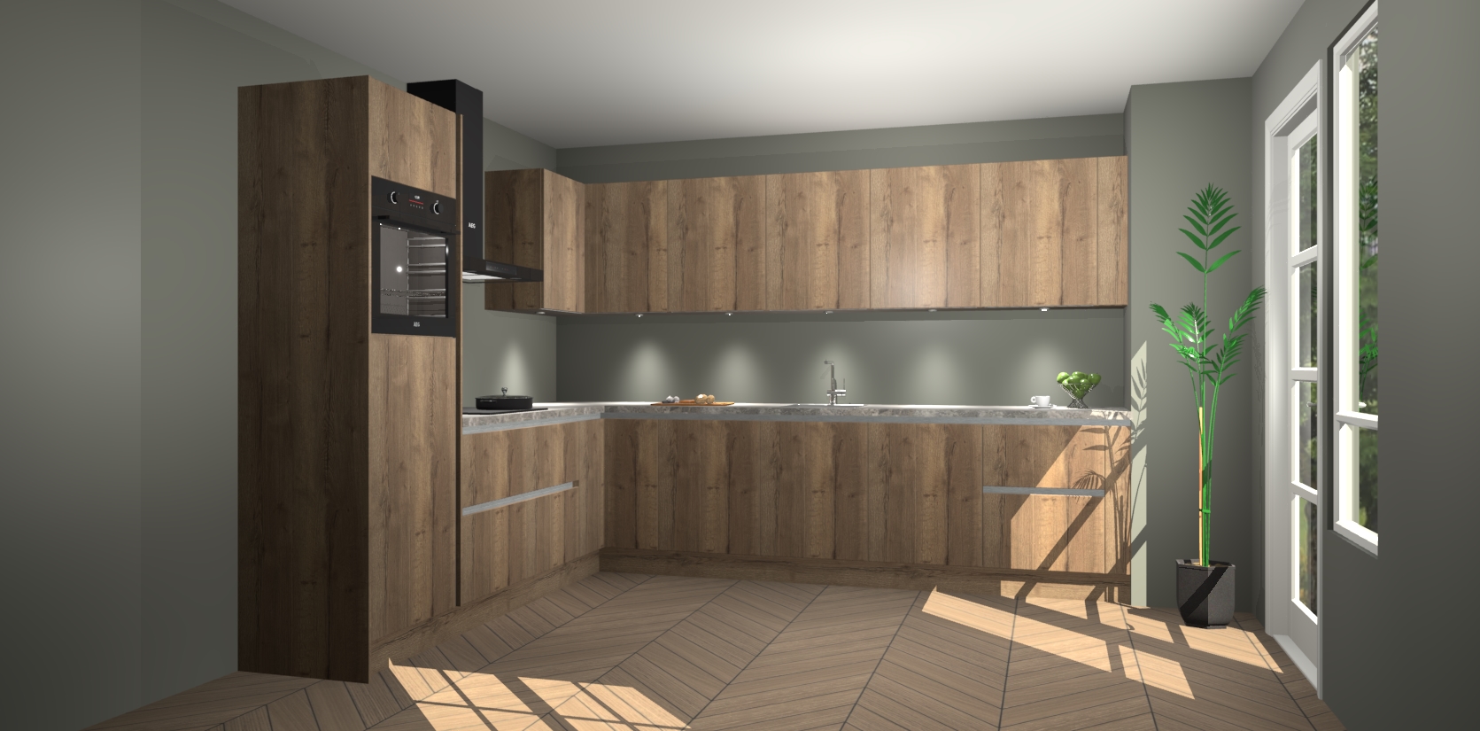 Als u op zoek bent naar de perfecte keuken om uw huis mee op te fleuren, zoek dan niet verder dan de Chocolade Eiken greeploze keuken Debar. Deze prachtige hoekkeuken straalt warmte en luxe uit met een modern maar geraffineerd design. Maak u nooit meer zorgen of u wel genoeg opbergruimte heeft; dit meubel biedt voldoende opbergruimte om al uw keukenbenodigdheden binnen handbereik te houden.