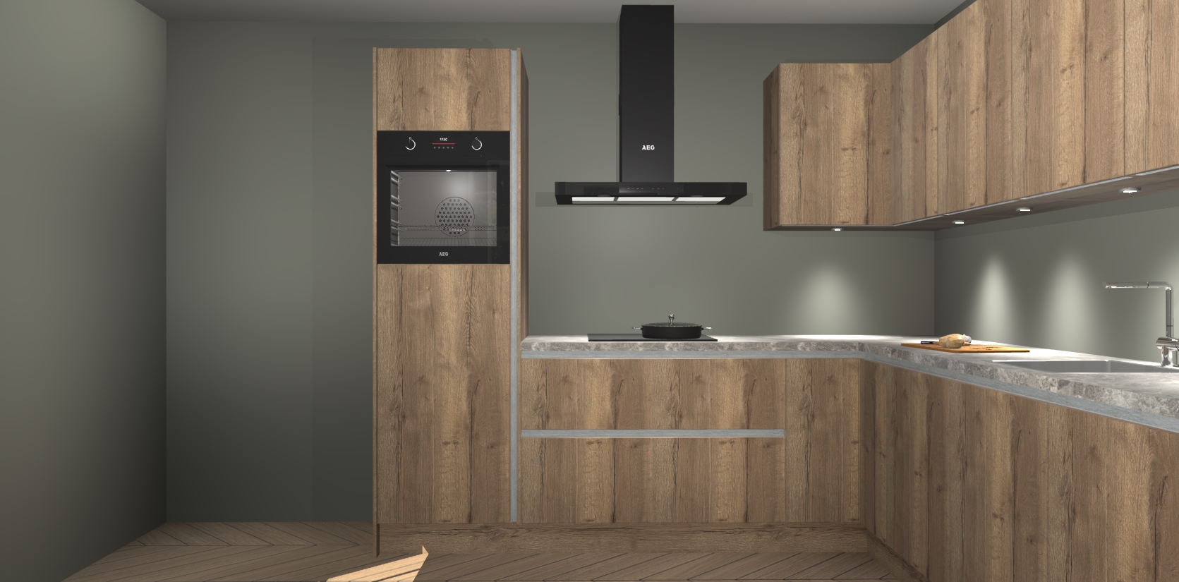 De Chocolade Eiken greeploze keuken Debar is uitgerust met vijf inbouwapparaten die elke kooktaak handig en efficiënt maken. Een oven, inductiekookplaat, afzuigkap, vaatwasser en koelkast zijn standaard, maar kunnen na bestelling eenvoudig worden geupgrade naar AEG. Profiteer vervolgens van de softclose deuren voor snelle toegang en geruisloze toegang.
