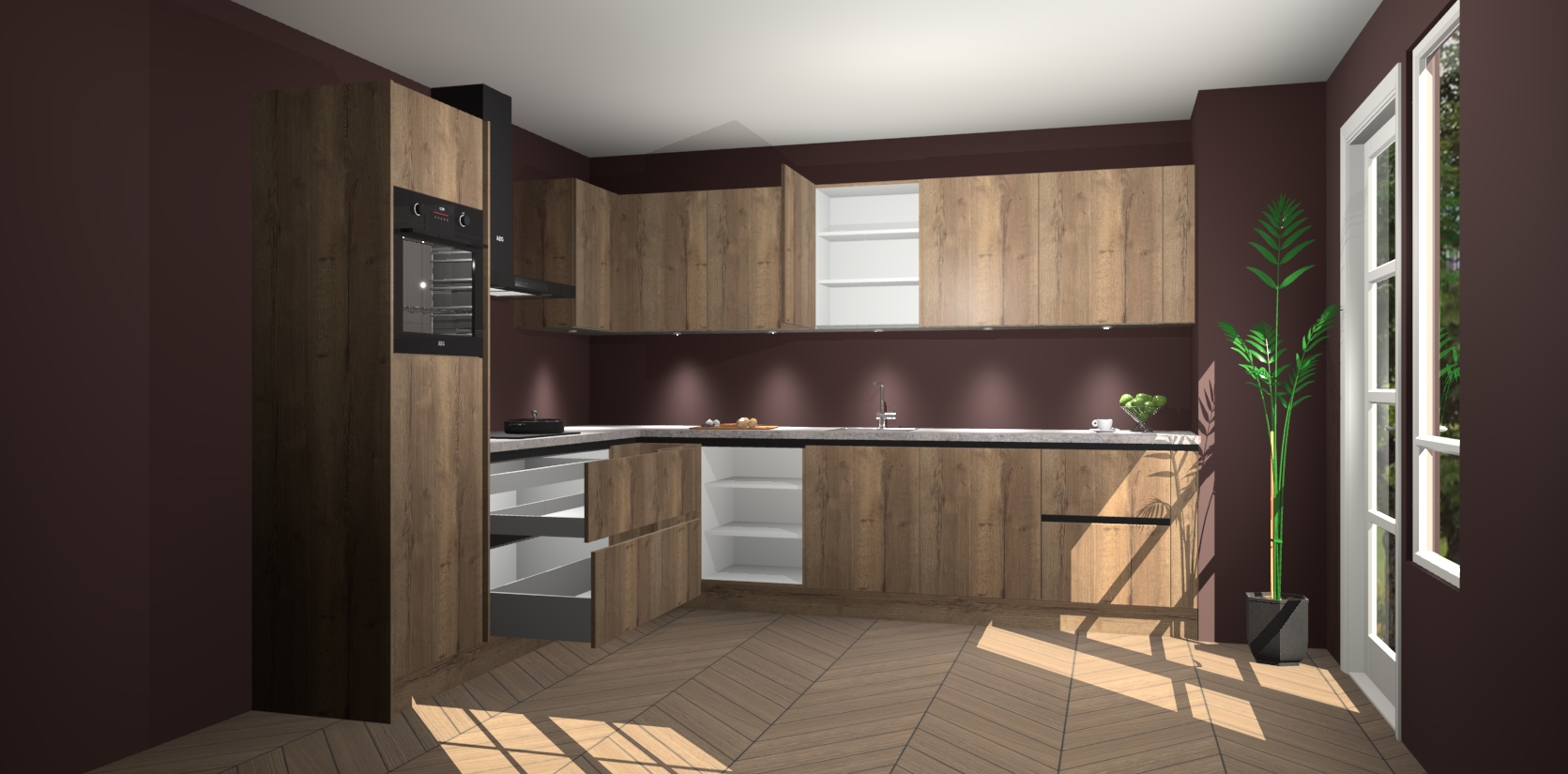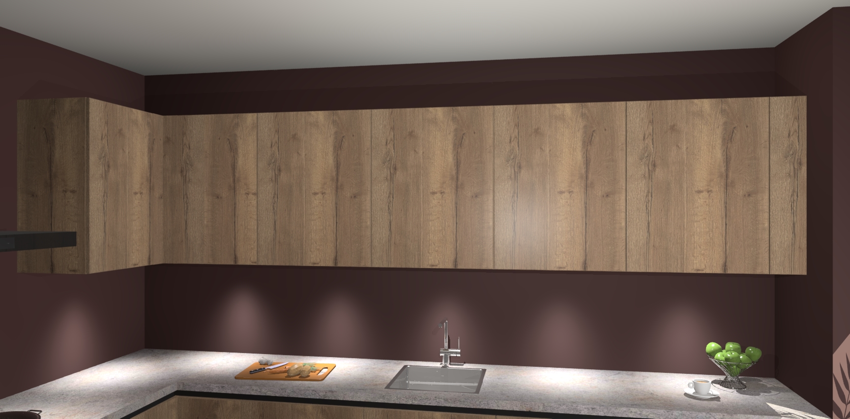 Als u op zoek bent naar de perfecte keuken om uw huis mee op te fleuren, zoek dan niet verder dan de Chocolade Eiken greeploze keuken Debar. Deze prachtige hoekkeuken straalt warmte en luxe uit met een modern maar geraffineerd design. Maak u nooit meer zorgen of u wel genoeg opbergruimte heeft; dit meubel biedt voldoende opbergruimte om al uw keukenbenodigdheden binnen handbereik te houden.