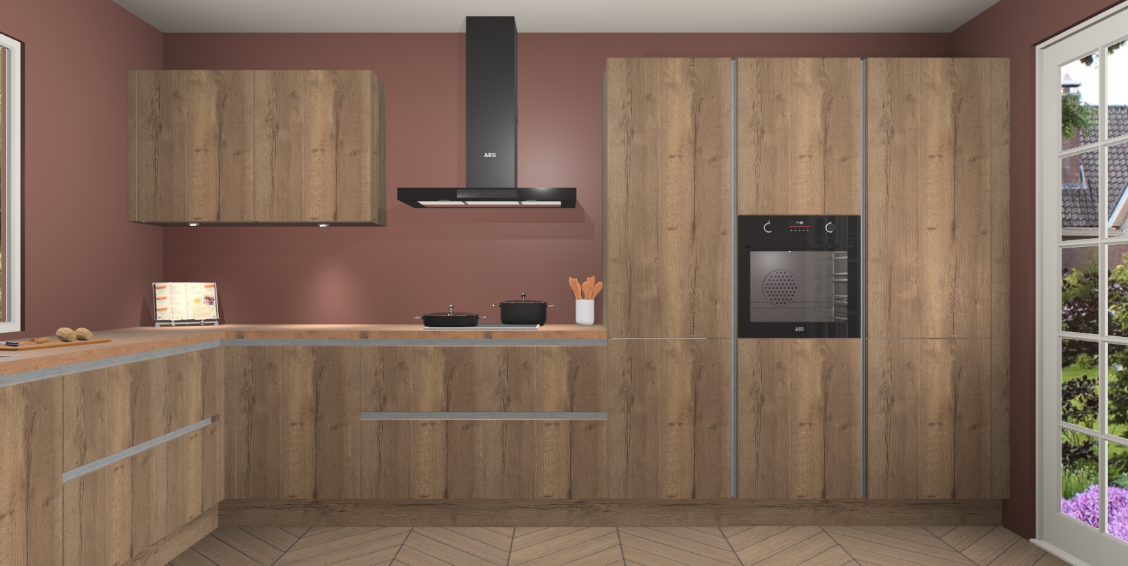 Heeft u nog apparatuur nodig? Geen probleem: de Chocolade Eiken greeploze keuken Debrecen bevat vijf ingebouwde apparaten - een oven, inductiekookplaat, afzuigkap, vaatwasser en koelkast - die gemakkelijk kunnen worden bijgewerkt naar AEG na bestelling. En als dat nog niet genoeg is; onze kasten worden pre-geassembleerd geleverd en zijn verkrijgbaar tegen een vastgeroeste lage prijs! U hoeft nooit meer te zoeken naar goede kwaliteit en service want onze producten hebben echt Duitse kwaliteit.