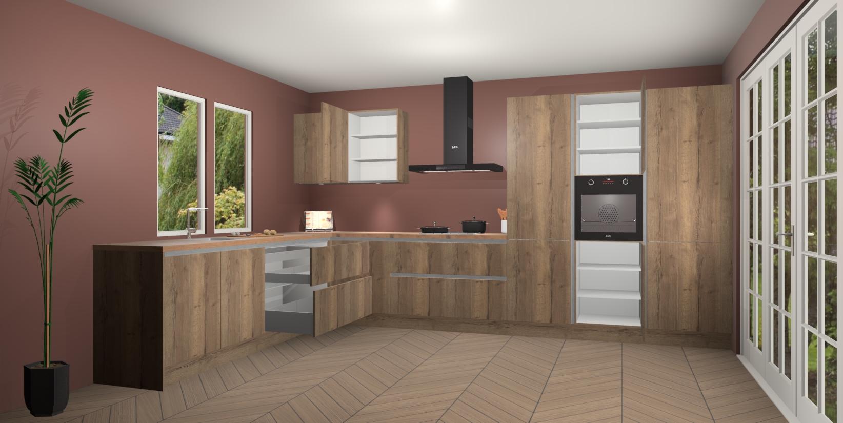 Kom dichtbij de perfecte keuken van uw dromen met de Chocolade Eiken greeploze keuken Debrecen. Met een prachtige houtlook en eigentijds ontwerp, straalt deze keuken warmte en sfeer uit. Of u nu liefhebber bent van traditionele of moderne stijlen, er is genoeg ruimte om aan al uw behoeften te voldoen.