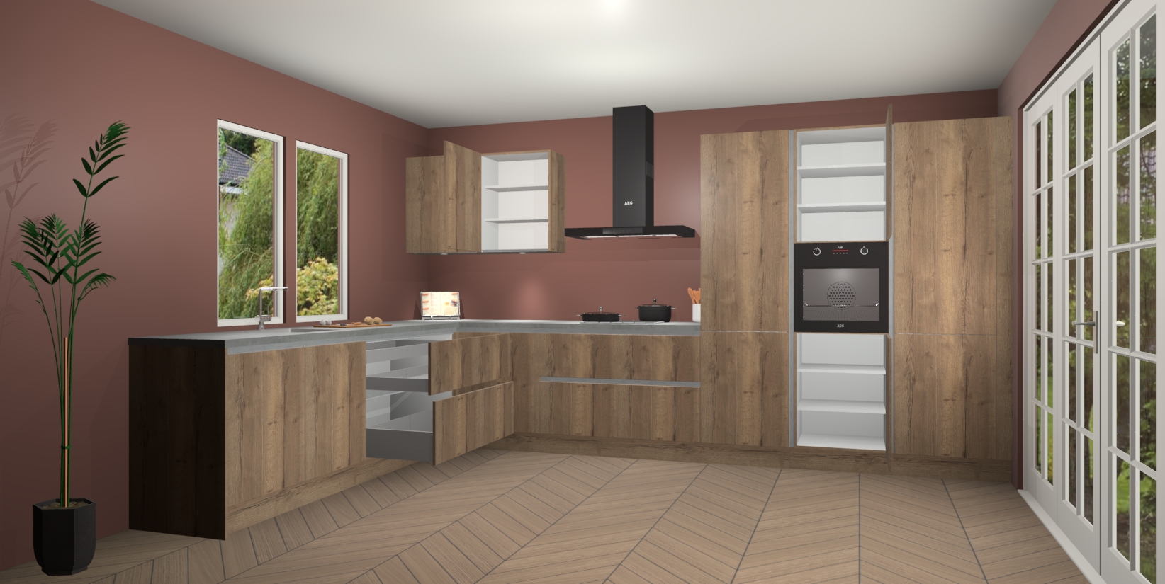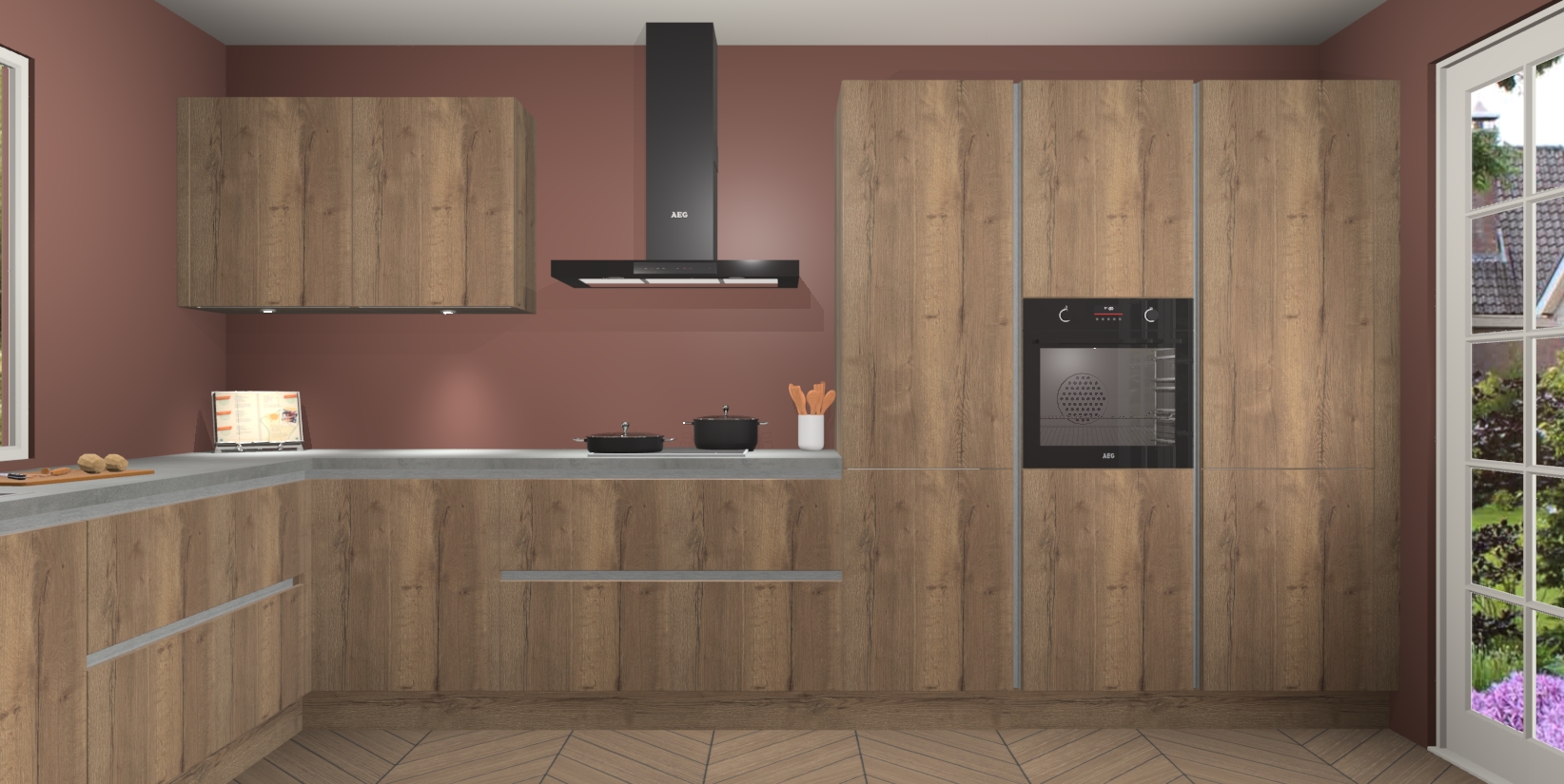 Heeft u nog apparatuur nodig? Geen probleem: de Chocolade Eiken greeploze keuken Debrecen bevat vijf ingebouwde apparaten - een oven, inductiekookplaat, afzuigkap, vaatwasser en koelkast - die gemakkelijk kunnen worden bijgewerkt naar AEG na bestelling. En als dat nog niet genoeg is; onze kasten worden pre-geassembleerd geleverd en zijn verkrijgbaar tegen een vastgeroeste lage prijs! U hoeft nooit meer te zoeken naar goede kwaliteit en service want onze producten hebben echt Duitse kwaliteit.