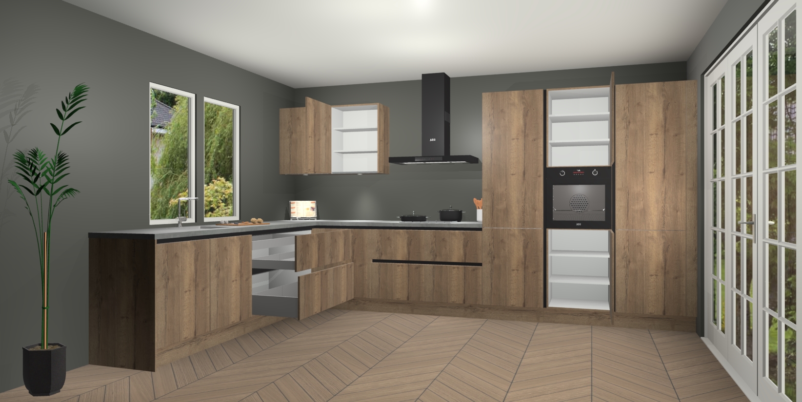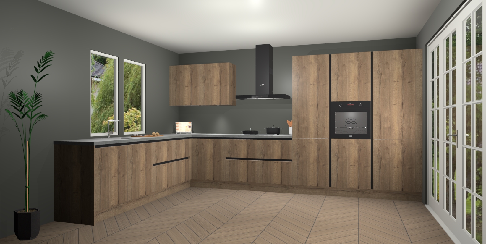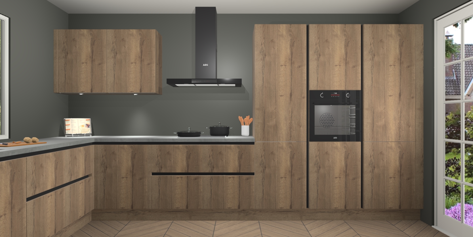 Kom dichtbij de perfecte keuken van uw dromen met de Chocolade Eiken greeploze keuken Debrecen. Met een prachtige houtlook en eigentijds ontwerp, straalt deze keuken warmte en sfeer uit. Of u nu liefhebber bent van traditionele of moderne stijlen, er is genoeg ruimte om aan al uw behoeften te voldoen.