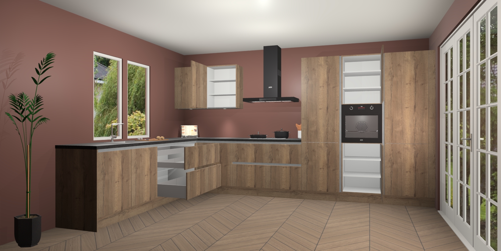 Kom dichtbij de perfecte keuken van uw dromen met de Chocolade Eiken greeploze keuken Debrecen. Met een prachtige houtlook en eigentijds ontwerp, straalt deze keuken warmte en sfeer uit. Of u nu liefhebber bent van traditionele of moderne stijlen, er is genoeg ruimte om aan al uw behoeften te voldoen.