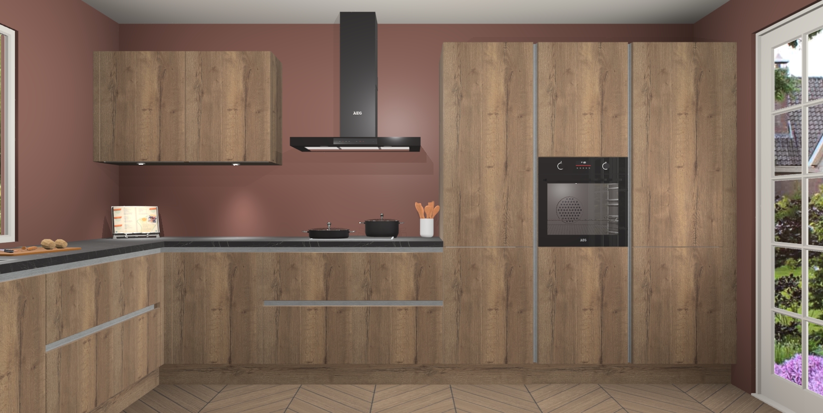 Heeft u nog apparatuur nodig? Geen probleem: de Chocolade Eiken greeploze keuken Debrecen bevat vijf ingebouwde apparaten - een oven, inductiekookplaat, afzuigkap, vaatwasser en koelkast - die gemakkelijk kunnen worden bijgewerkt naar AEG na bestelling. En als dat nog niet genoeg is; onze kasten worden pre-geassembleerd geleverd en zijn verkrijgbaar tegen een vastgeroeste lage prijs! U hoeft nooit meer te zoeken naar goede kwaliteit en service want onze producten hebben echt Duitse kwaliteit.
