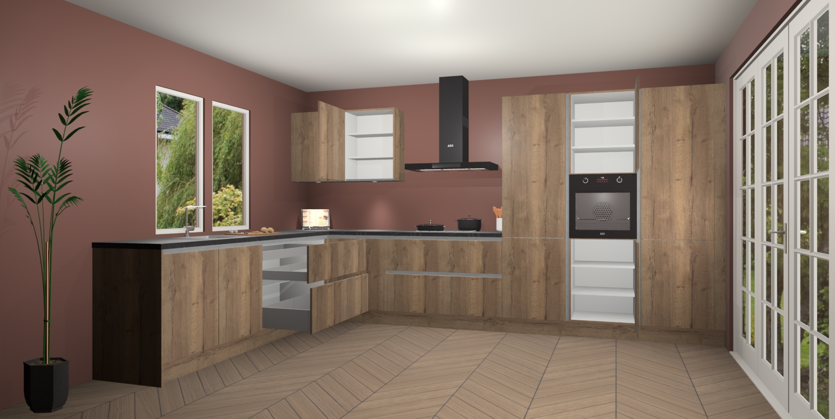 Kom dichtbij de perfecte keuken van uw dromen met de Chocolade Eiken greeploze keuken Debrecen. Met een prachtige houtlook en eigentijds ontwerp, straalt deze keuken warmte en sfeer uit. Of u nu liefhebber bent van traditionele of moderne stijlen, er is genoeg ruimte om aan al uw behoeften te voldoen.