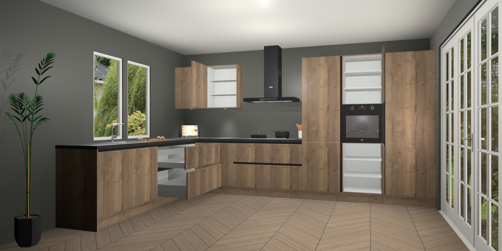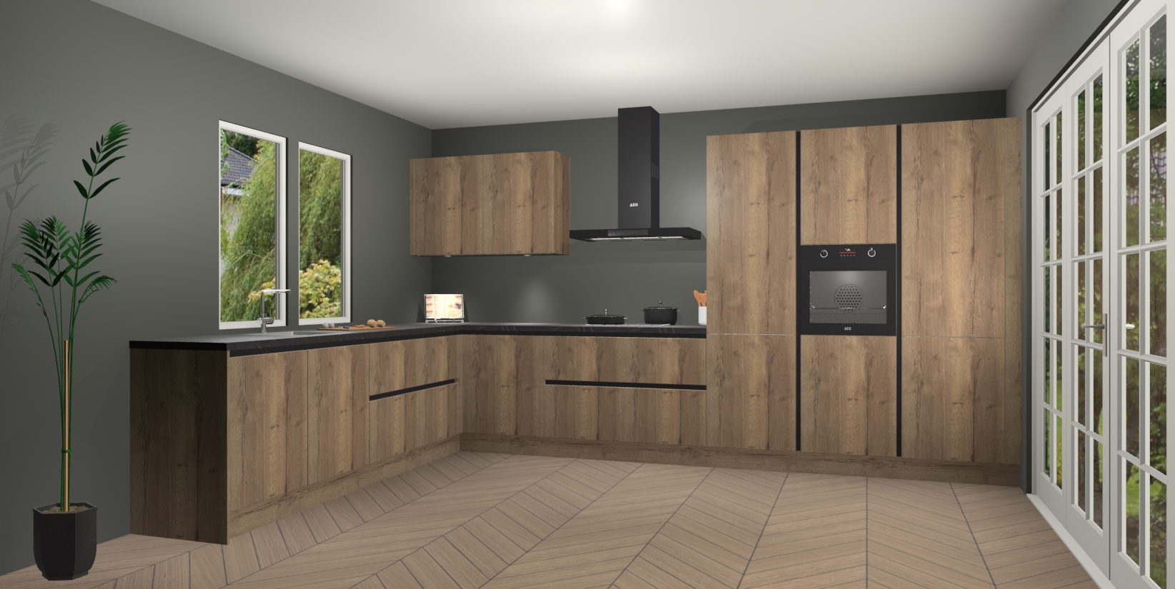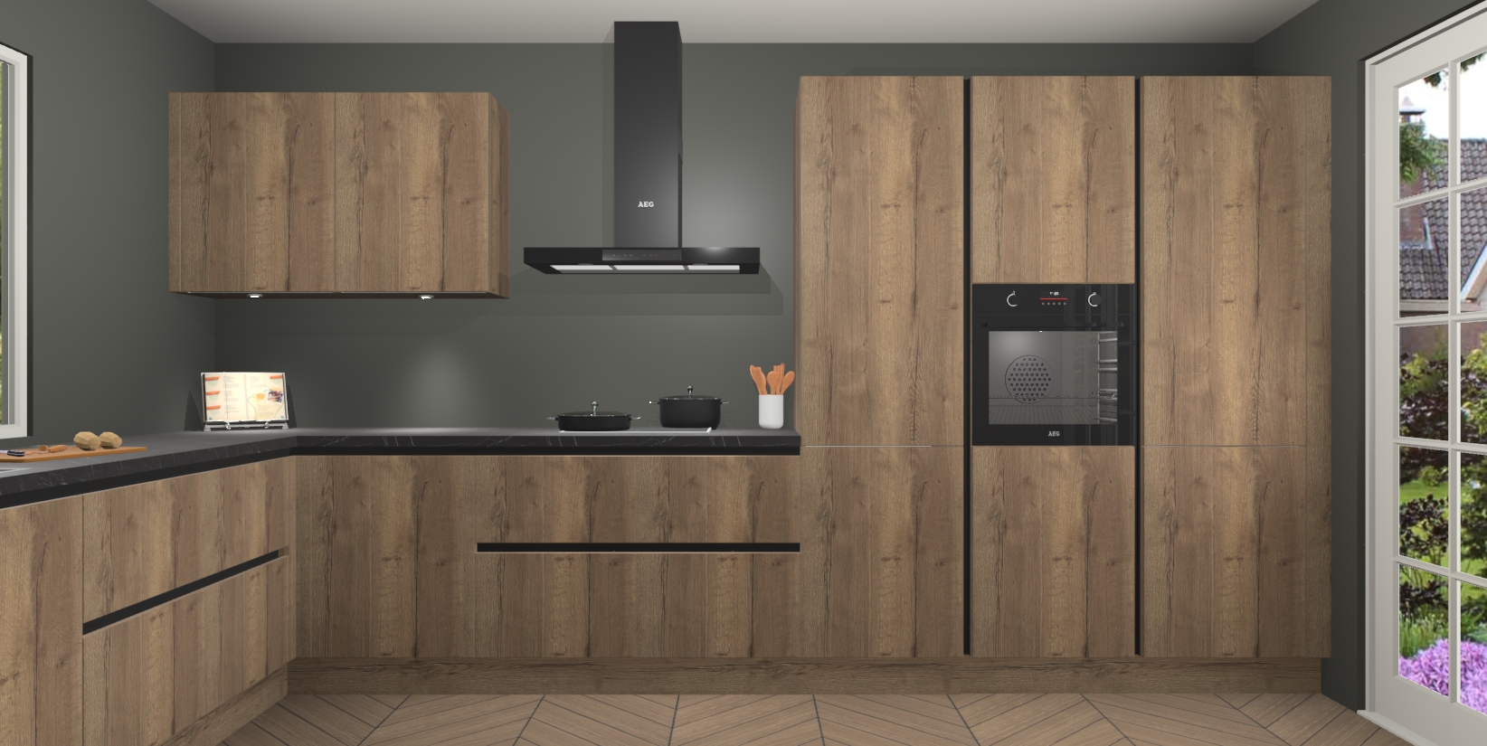 Kom dichtbij de perfecte keuken van uw dromen met de Chocolade Eiken greeploze keuken Debrecen. Met een prachtige houtlook en eigentijds ontwerp, straalt deze keuken warmte en sfeer uit. Of u nu liefhebber bent van traditionele of moderne stijlen, er is genoeg ruimte om aan al uw behoeften te voldoen.