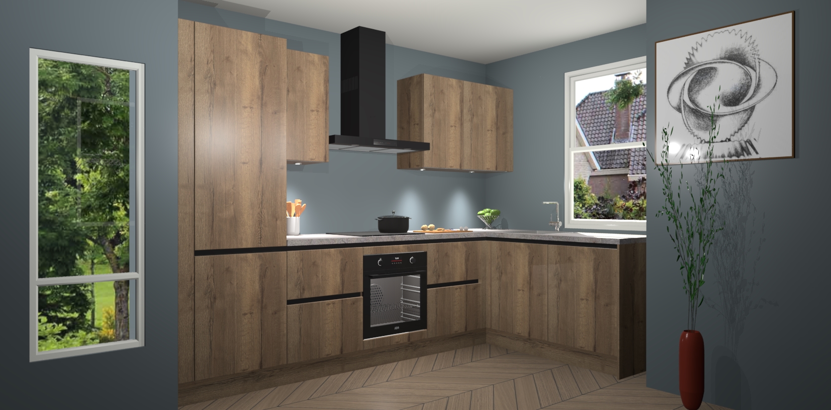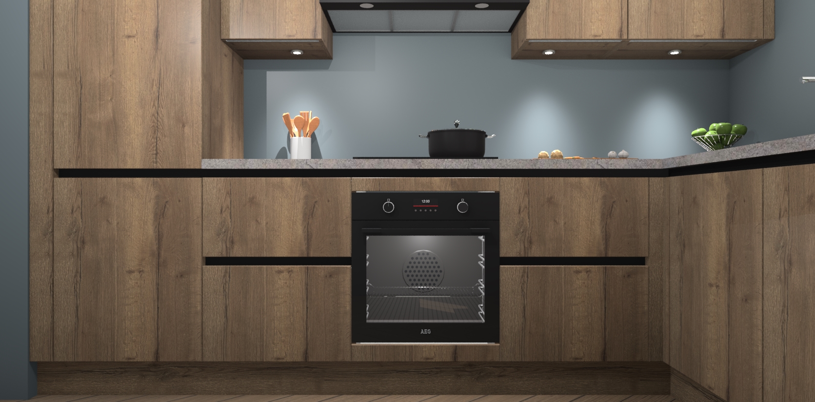De Chocolade Eiken greeploze keuken Geneve is uitgerust met 5 inbouwapparaten - een oven, inductiekookplaat, afzuigkap, vaatwasser en koelkast - voor al uw kook- en bewaarbehoeftes. U kunt deze apparaten desgewenst eenvoudig upgraden naar AEG of de oven omruilen voor een combimagnetron na het plaatsen van uw bestelling. En met de soft close deuren, voldoende opbergruimte en kasten die voorgemonteerd worden geleverd, bent u in een mum van tijd klaar om heerlijke maaltijden te bereiden!