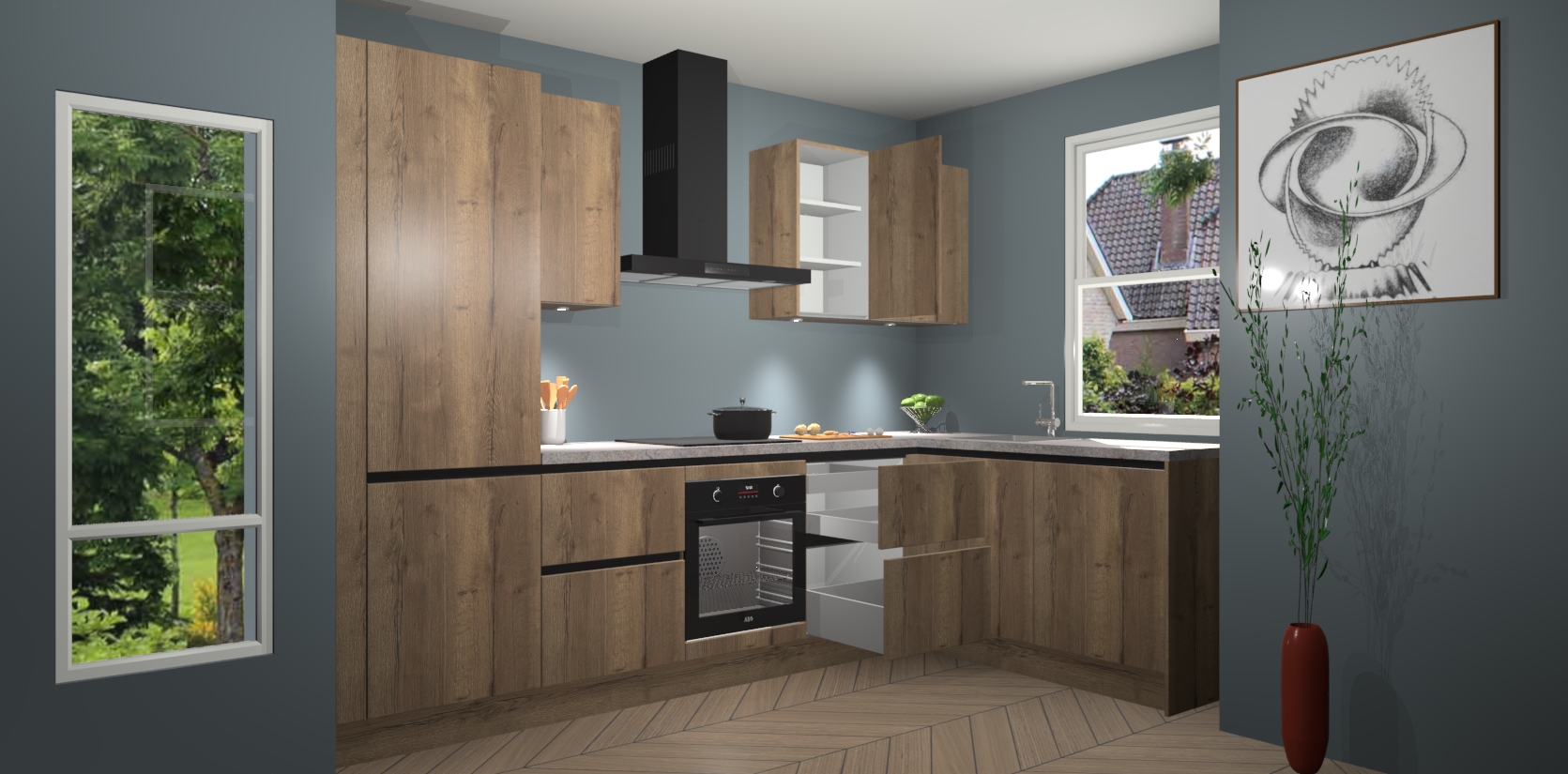 In deze box zijn alle kleuren verzameld van de deuren en werkbladen. Vraag de gratis kleurenbox aan en kijk thuis rustig verder!
