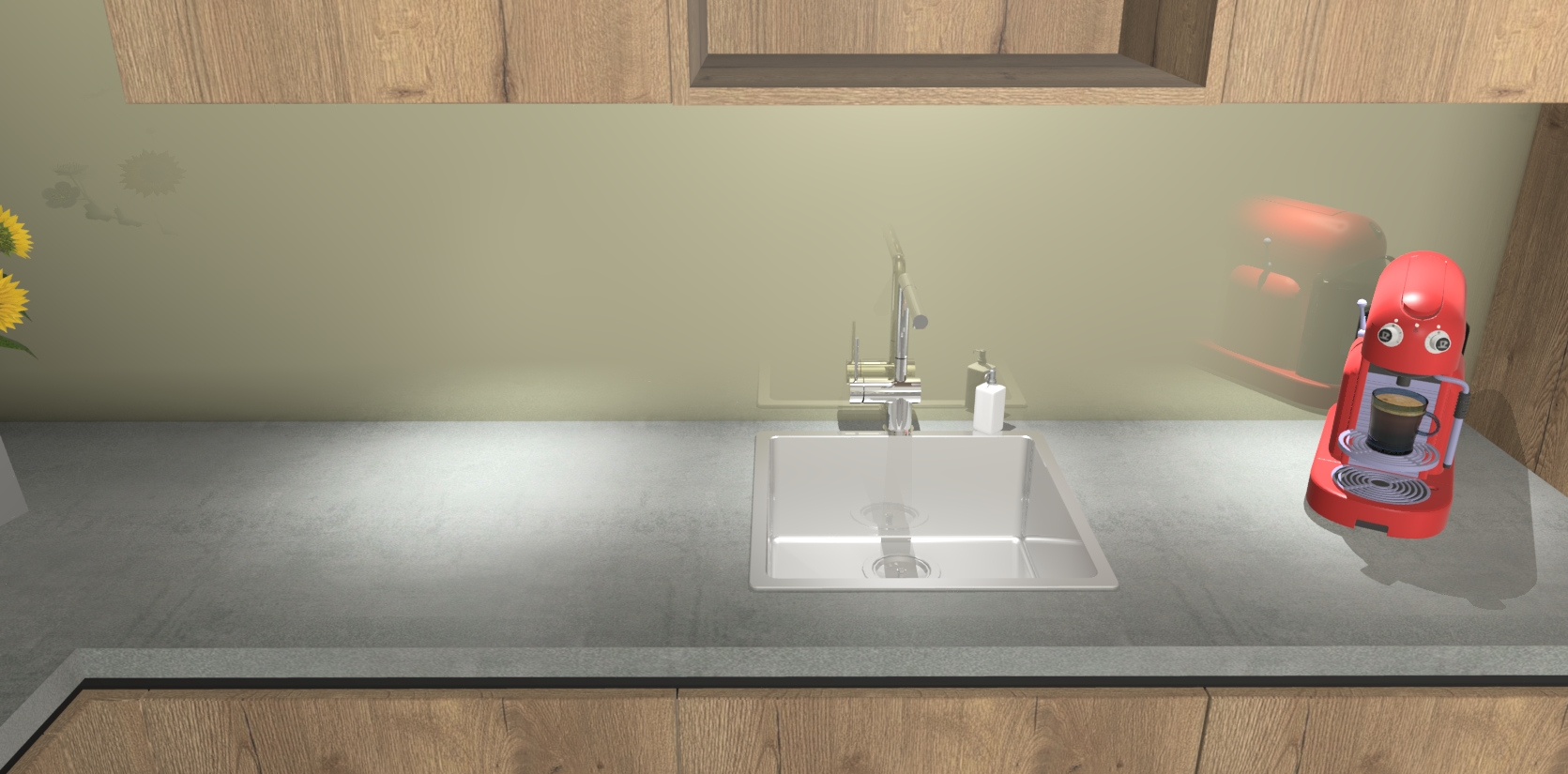 - De spoelbak is nog niet in gevreesd. Dit dient tijdens het werk gedaan te worden