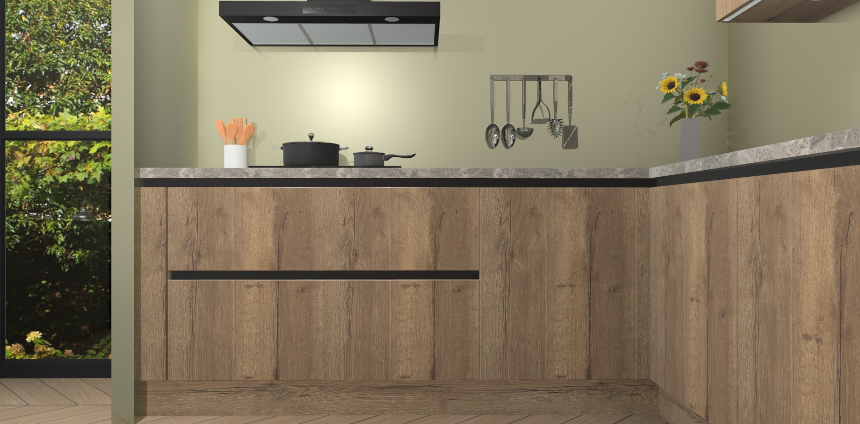 Stelt u zich voor dat u bij thuiskomst wordt begroet door de luxe aanwezigheid van de Chocolade Eiken greeploze keuken Gotenburg, een modern design dat op de eerste plaats staat als het gaat om stijl en functionaliteit! Met hoogwaardige afwerking en elegantie die ongeëvenaard elegant is, brengt deze keuken gezelligheid in uw huis. We zijn er zeker van dat u verrast zult zijn door alle extravagantie die deze keuken te bieden heeft.