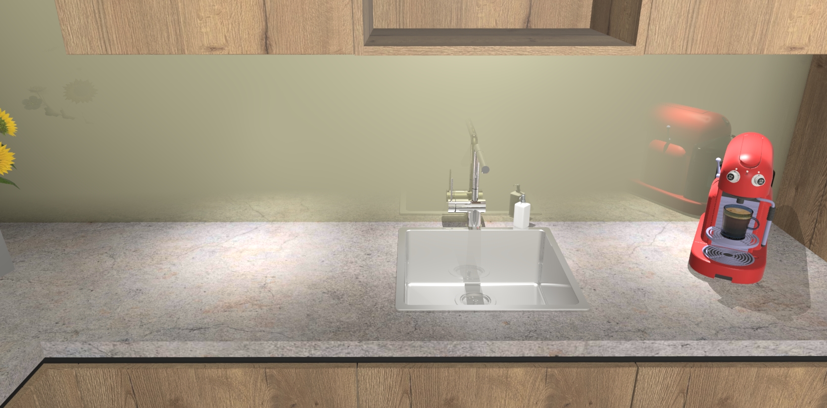 - De spoelbak is nog niet in gevreesd. Dit dient tijdens het werk gedaan te worden