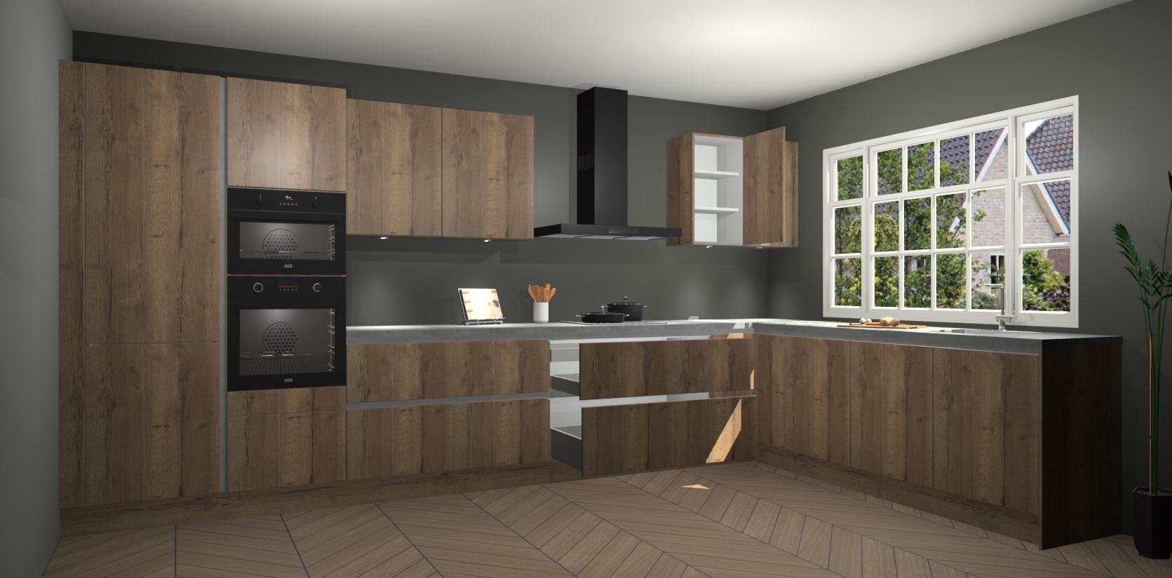 Heeft u nog apparatuur nodig? Geen probleem: de chocolade eiken greeploze keuken Graz bevat vijf ingebouwde apparaten - een oven, inductiekookplaat, afzuigkap, vaatwasser en koelkast - die gemakkelijk kunnen worden bijgewerkt naar AEG na bestelling. En als dat nog niet genoeg is; onze kasten worden pre-geassembleerd geleverd en zijn verkrijgbaar tegen een vastgeroeste lage prijs! U hoeft nooit meer te zoeken naar goede kwaliteit en service want onze producten hebben echt Duitse kwaliteit.