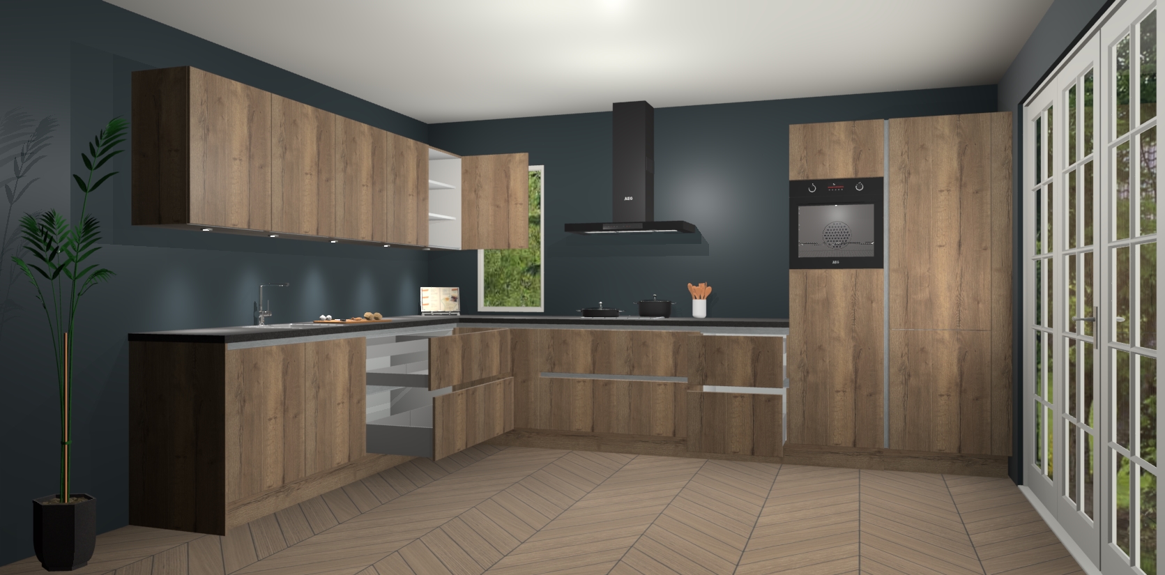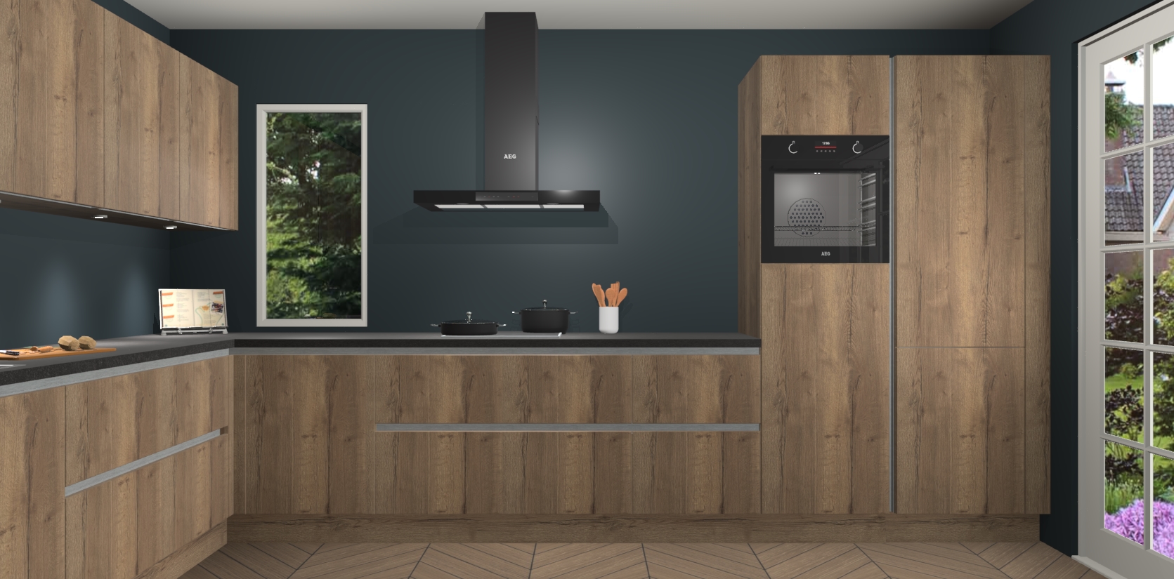 Heeft u nog apparatuur nodig? Geen probleem: de chocolade eiken greeploze keuken Harare bevat vijf ingebouwde apparaten - een oven, inductiekookplaat, afzuigkap, vaatwasser en koelkast - die gemakkelijk kunnen worden bijgewerkt naar AEG na bestelling. En als dat nog niet genoeg is; onze kasten worden pre-geassembleerd geleverd en zijn verkrijgbaar tegen een vastgeroeste lage prijs! U hoeft nooit meer te zoeken naar goede kwaliteit en service want onze producten hebben echt Duitse kwaliteit.