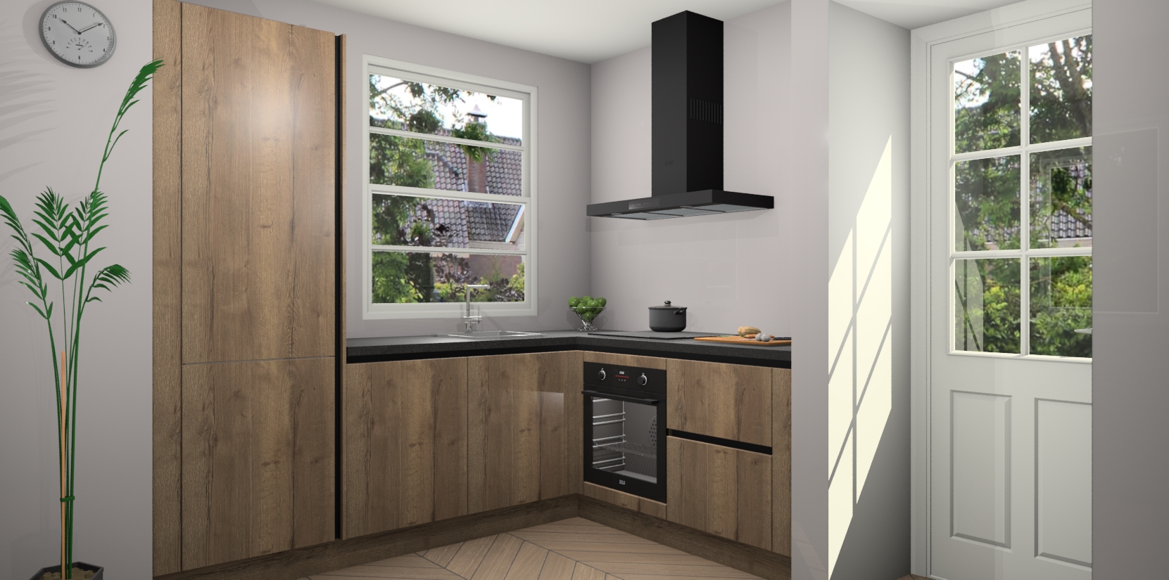 Wilt u een echte aanwinst voor uw keuken, maar bent u op zoek naar iets specialers dan de standaardkeukens? Kies dan voor de Chocolade Eiken greeploze keuken Harbin! Dit prachtige hoekkeukenontwerp geeft u alle ruimte om optimaal te genieten van heerlijk koken. Het uitmuntende afwerkingsniveau, de fraaie houtstructuur en de sfeervolle zwarte grepen maken van de Chocolade Eiken greeploze keuken Harbin de perfecte keuze voor zowel enthousiaste thuiskoks als design-minded interieurliefhebbers.