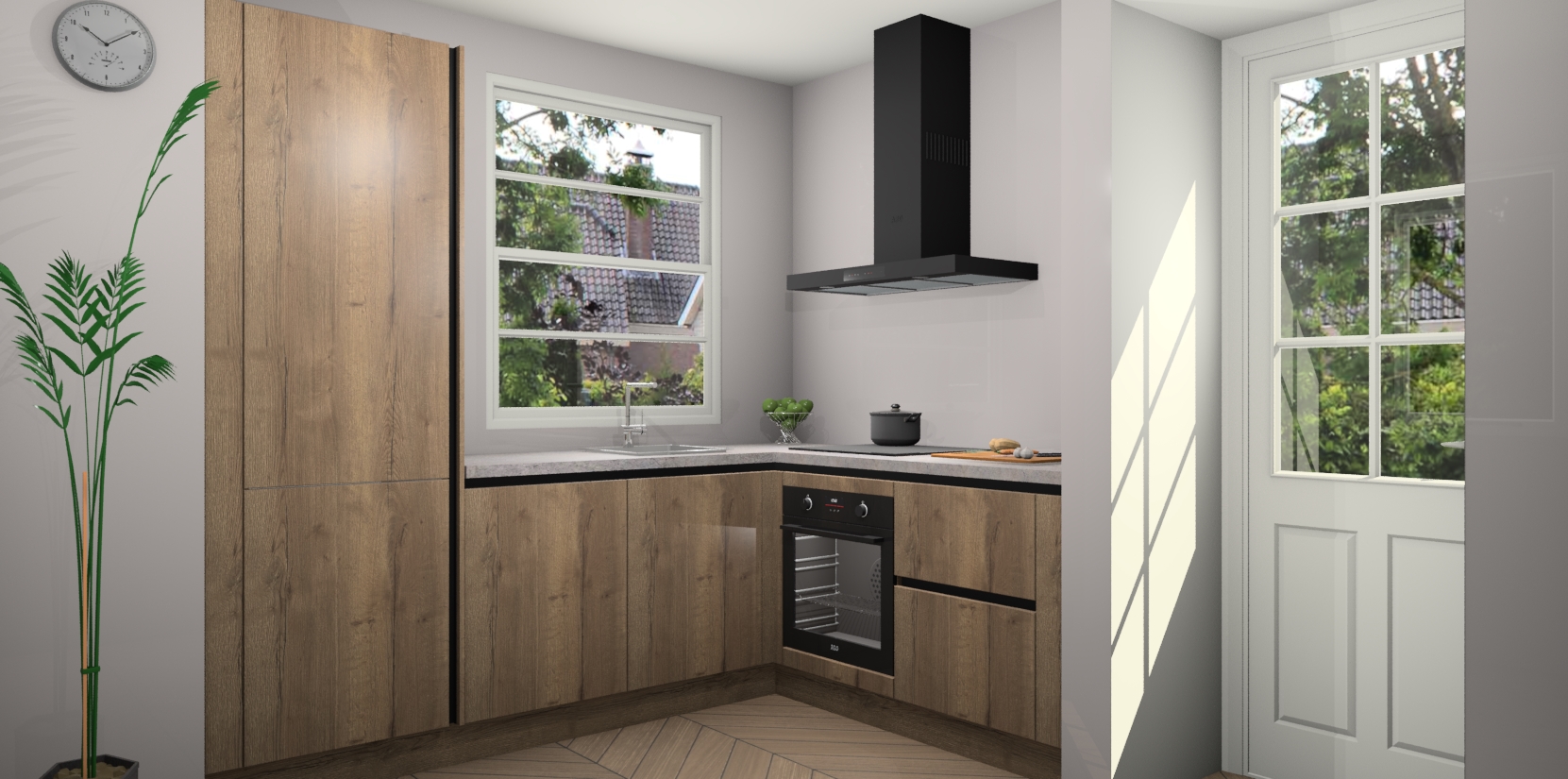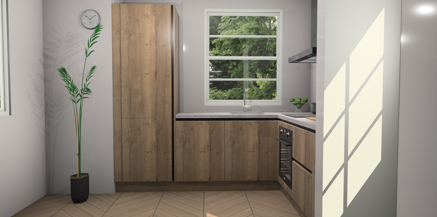 Wilt u een echte aanwinst voor uw keuken, maar bent u op zoek naar iets specialers dan de standaardkeukens? Kies dan voor de Chocolade Eiken greeploze keuken Harbin! Dit prachtige hoekkeukenontwerp geeft u alle ruimte om optimaal te genieten van heerlijk koken. Het uitmuntende afwerkingsniveau, de fraaie houtstructuur en de sfeervolle zwarte grepen maken van de Chocolade Eiken greeploze keuken Harbin de perfecte keuze voor zowel enthousiaste thuiskoks als design-minded interieurliefhebbers.
