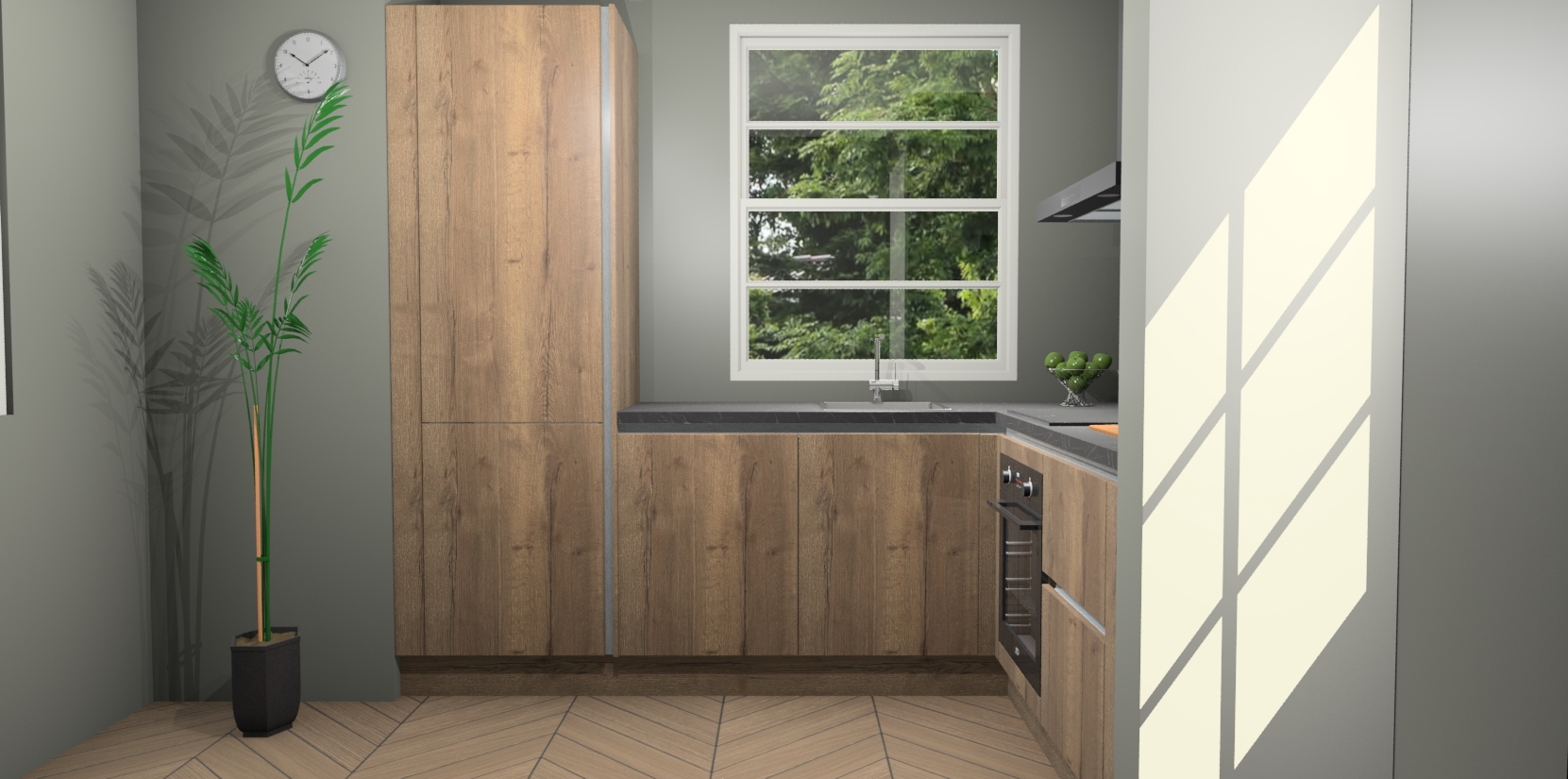 Wilt u een echte aanwinst voor uw keuken, maar bent u op zoek naar iets specialers dan de standaardkeukens? Kies dan voor de Chocolade Eiken greeploze keuken Harbin! Dit prachtige hoekkeukenontwerp geeft u alle ruimte om optimaal te genieten van heerlijk koken. Het uitmuntende afwerkingsniveau, de fraaie houtstructuur en de sfeervolle zwarte grepen maken van de Chocolade Eiken greeploze keuken Harbin de perfecte keuze voor zowel enthousiaste thuiskoks als design-minded interieurliefhebbers.