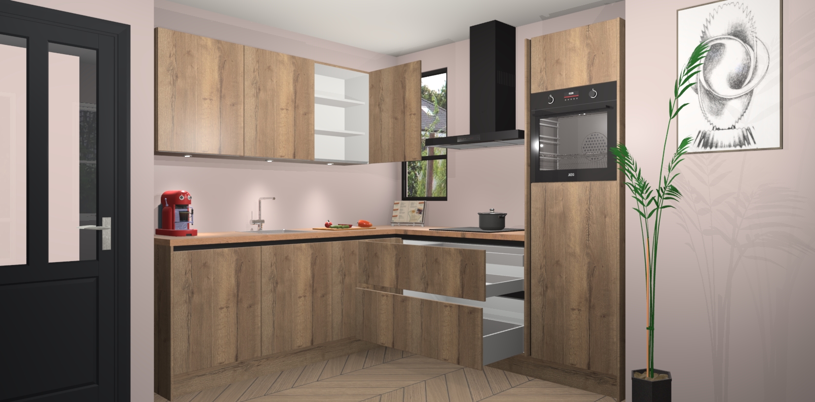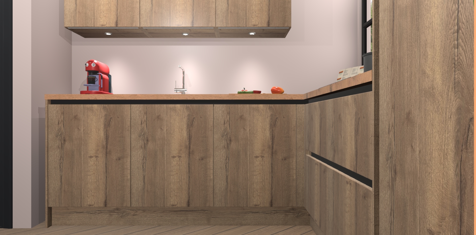 Inclusief plinten, stelpoten en werkblad