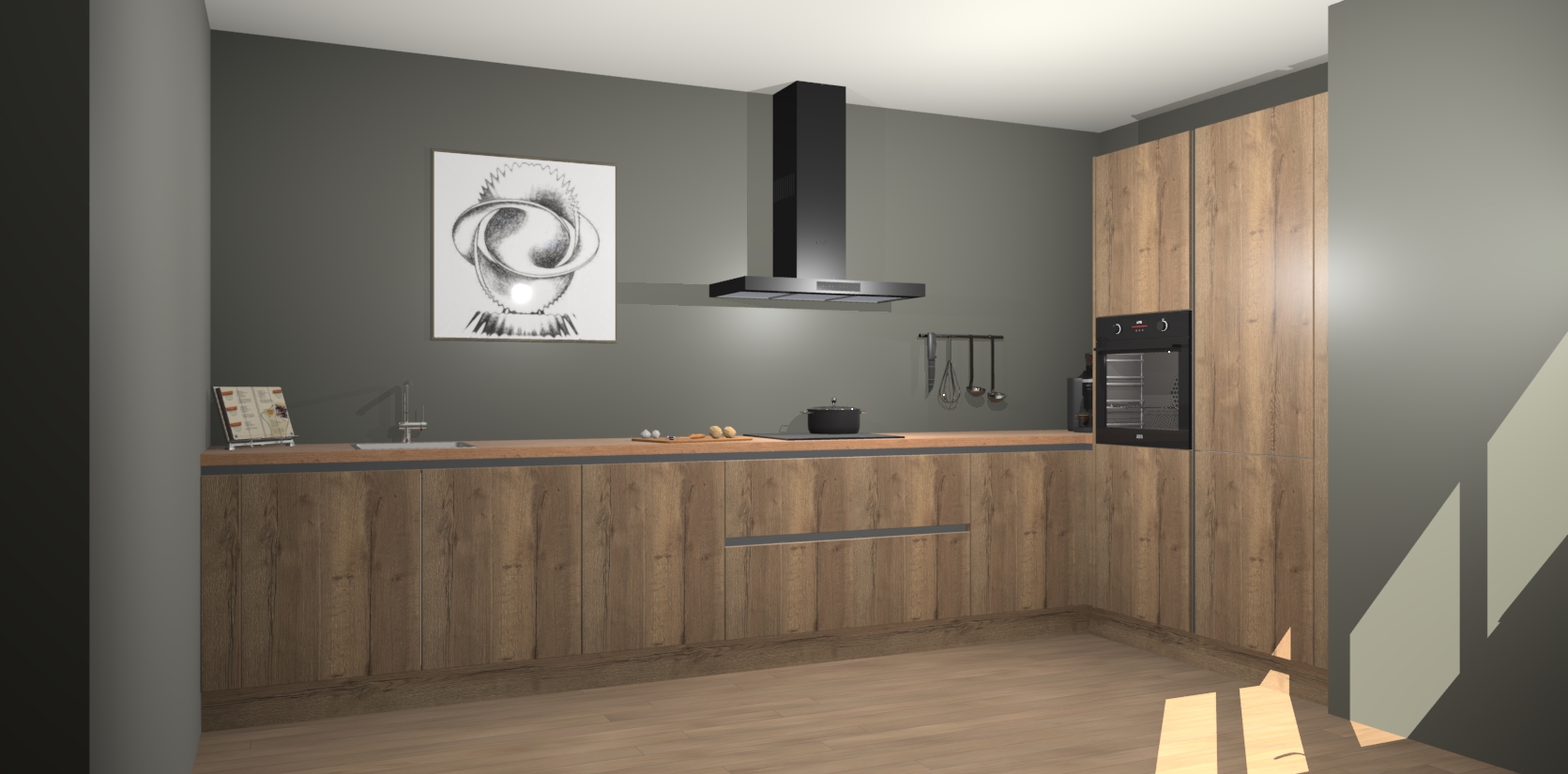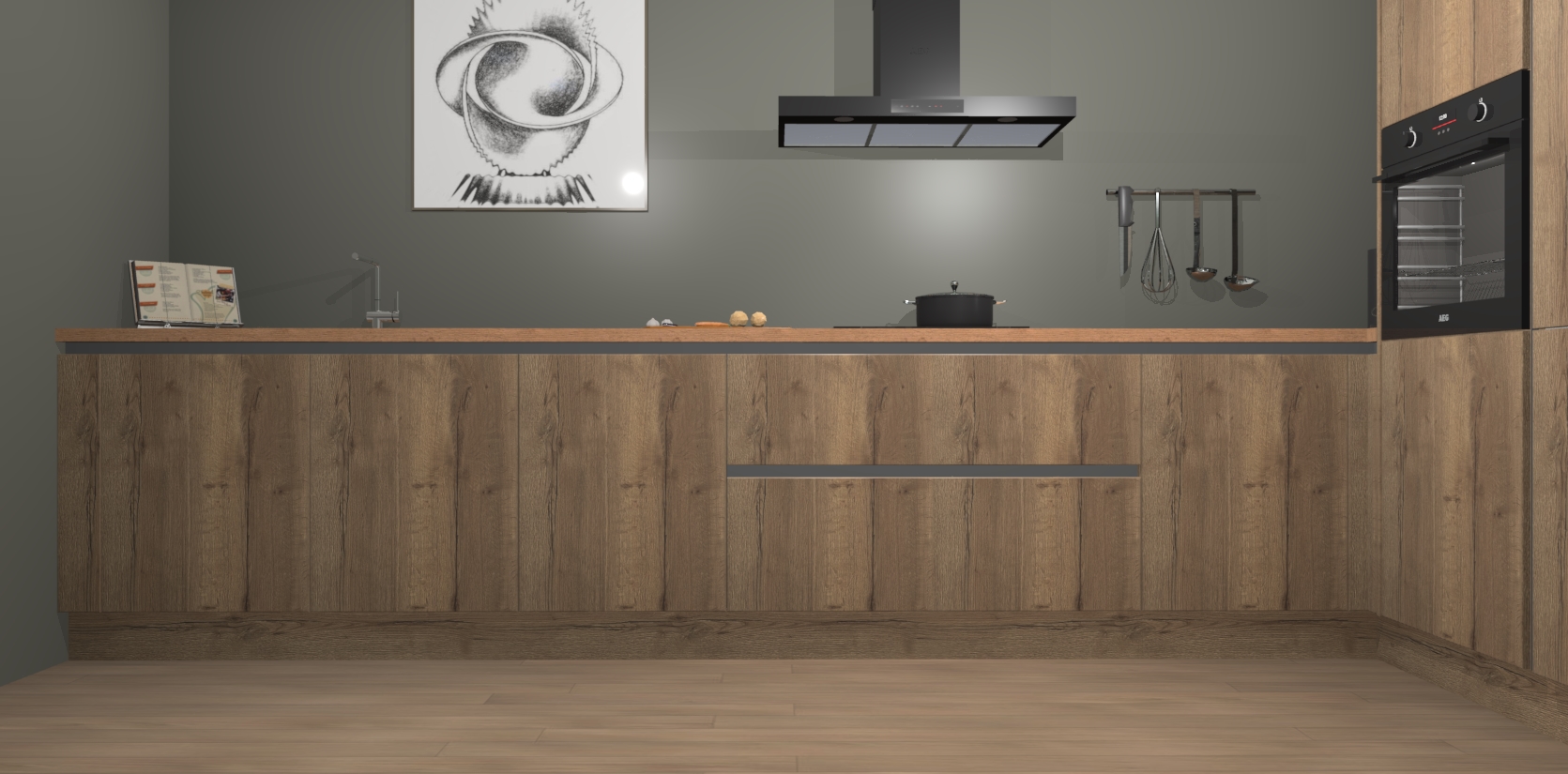 Welkom bij de Chocolade Eiken greeploze keuken Khao Lak. Deze prachtige keuken zal de komende jaren het middelpunt van de belangstelling in uw huis zijn. Uitgerust met vijf inbouwapparaten komt u nooit kookgereedschap tekort. Bovendien geeft de warme houtlook elke ruimte een uitnodigende en tijdloze uitstraling.