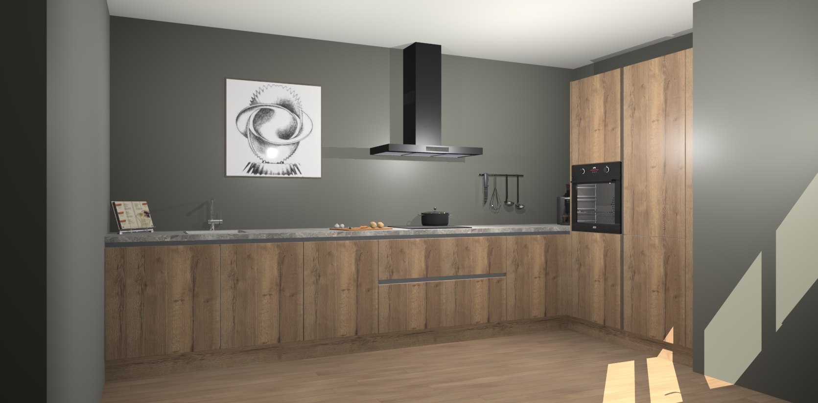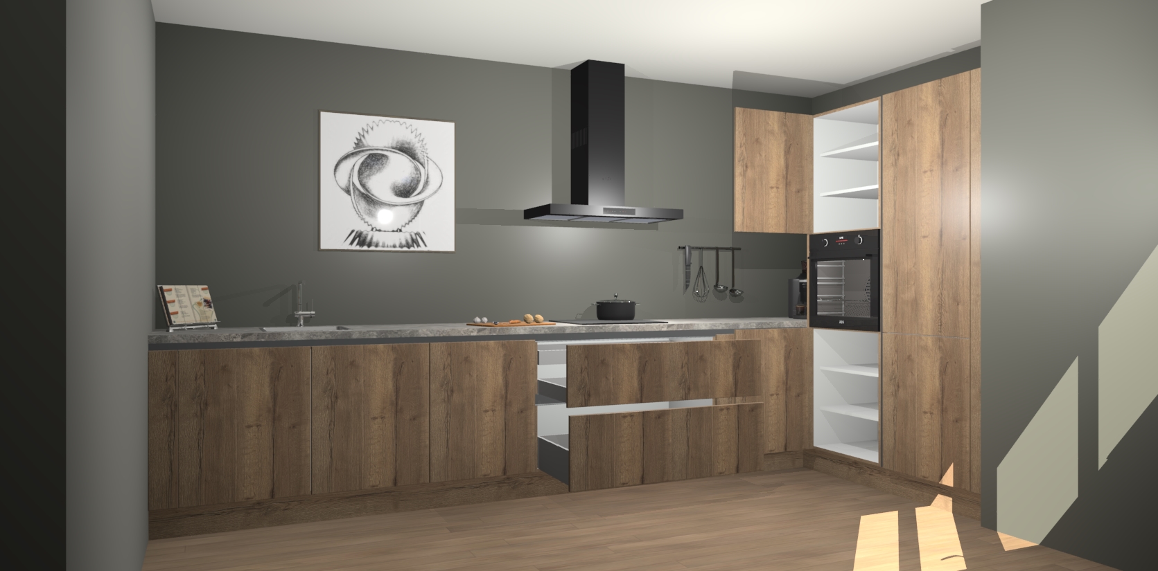 Welkom bij de Chocolade Eiken greeploze keuken Khao Lak. Deze prachtige keuken zal de komende jaren het middelpunt van de belangstelling in uw huis zijn. Uitgerust met vijf inbouwapparaten komt u nooit kookgereedschap tekort. Bovendien geeft de warme houtlook elke ruimte een uitnodigende en tijdloze uitstraling.