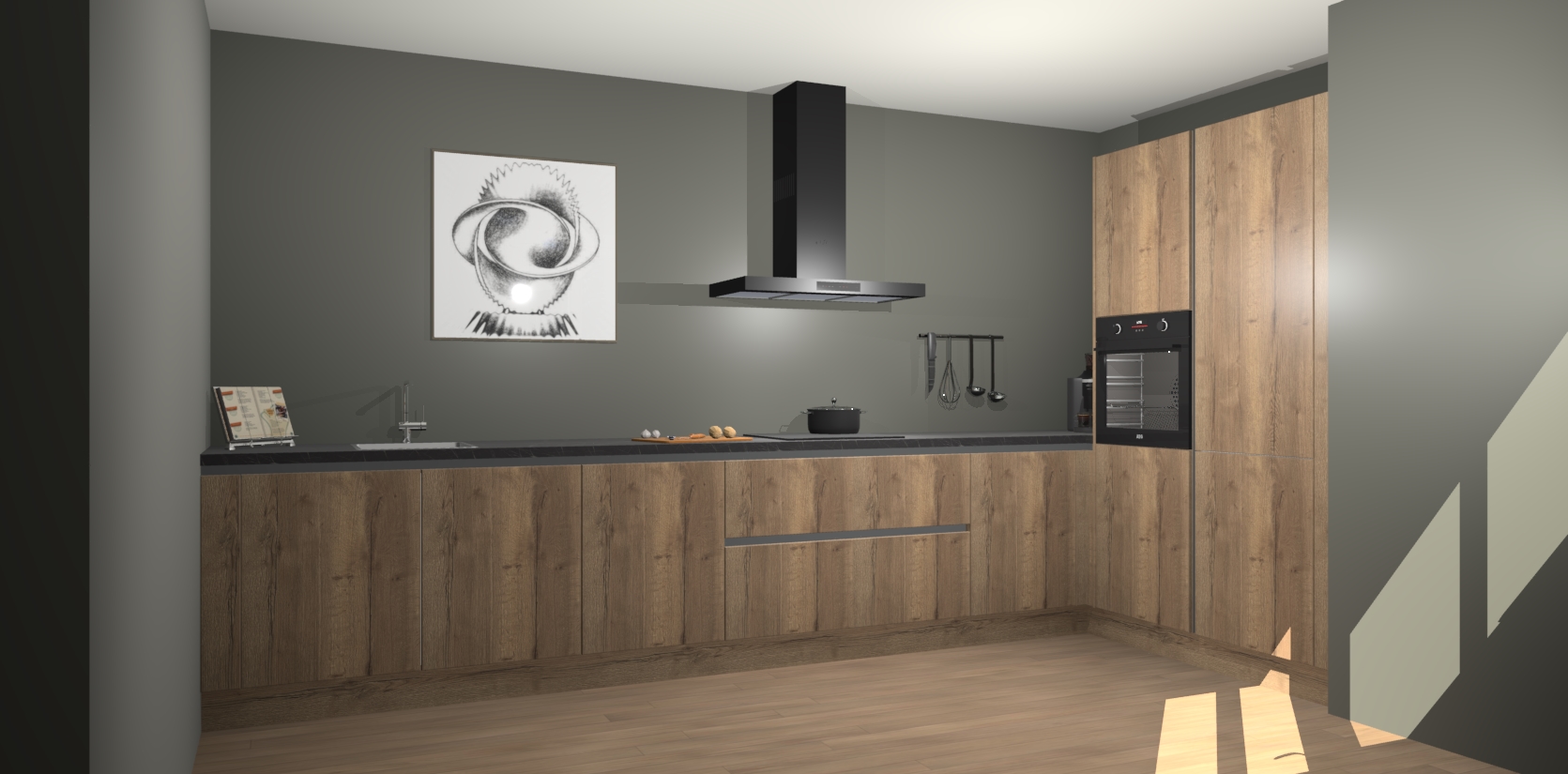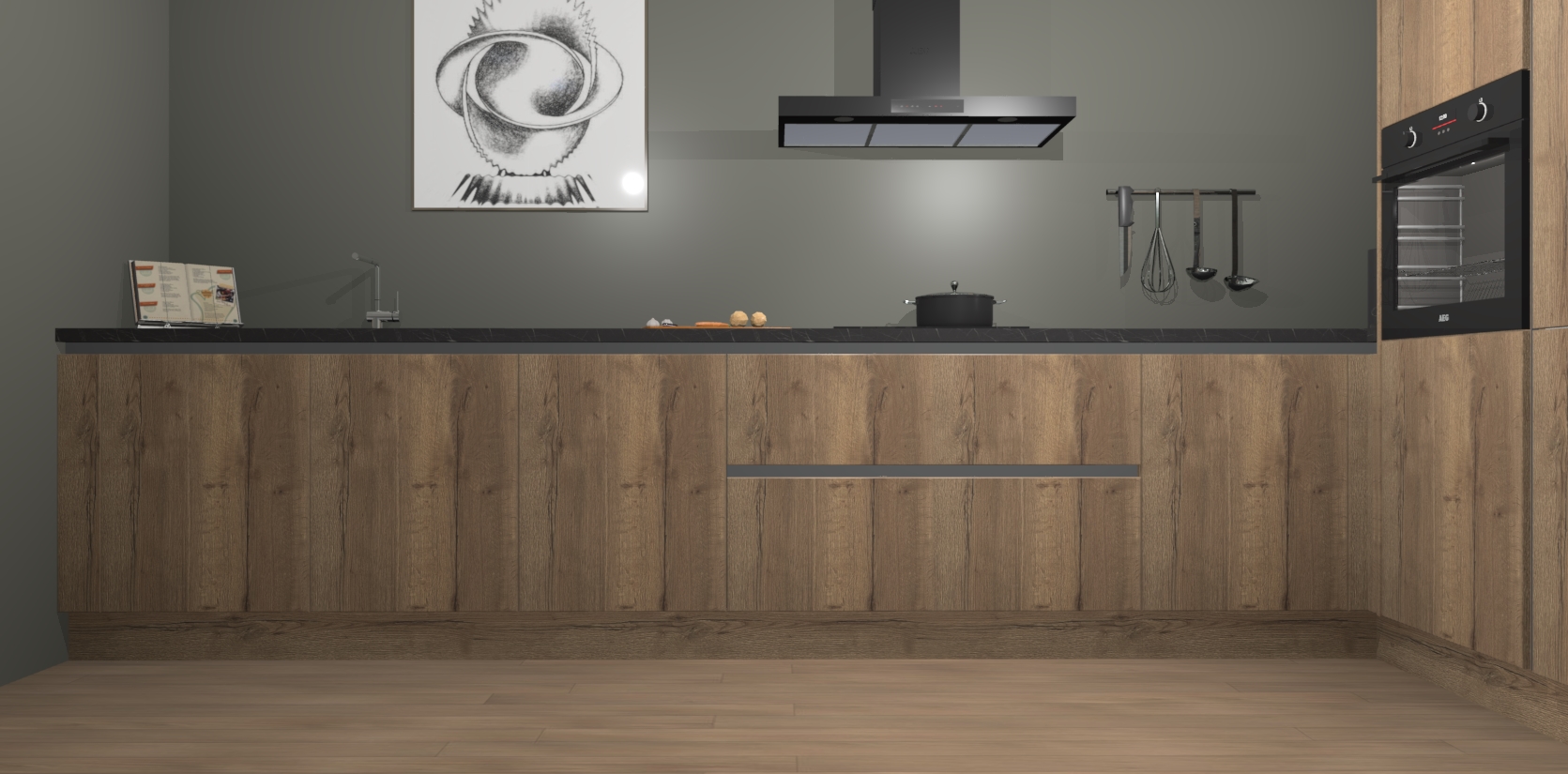 Welkom bij de Chocolade Eiken greeploze keuken Khao Lak. Deze prachtige keuken zal de komende jaren het middelpunt van de belangstelling in uw huis zijn. Uitgerust met vijf inbouwapparaten komt u nooit kookgereedschap tekort. Bovendien geeft de warme houtlook elke ruimte een uitnodigende en tijdloze uitstraling.