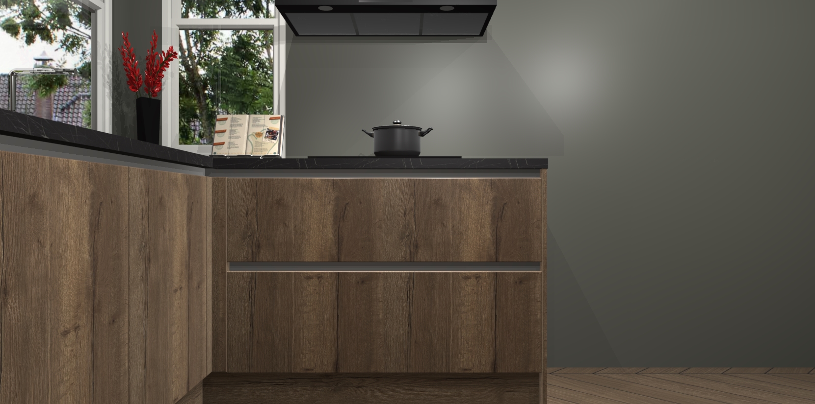 En dat is nog niet alles: u krijgt al dit gemak ook nog eens voor een vaste lage prijs! Bovendien is de levering snel: de Chocolade Eiken greeploze keuken Kotor wordt al 7 weken na bestelling geleverd! Dat klopt - we leveren ze zelfs voorgemonteerd voor uw gemak. Dus waarom wachten? Haal de Chocolade Eiken greeploze keuken Kotor vandaag nog in huis - een prachtige hoekkeuken met alle toeters en bellen die uw huis nodig heeft. Wacht niet - handel nu zolang de voorraad strekt!