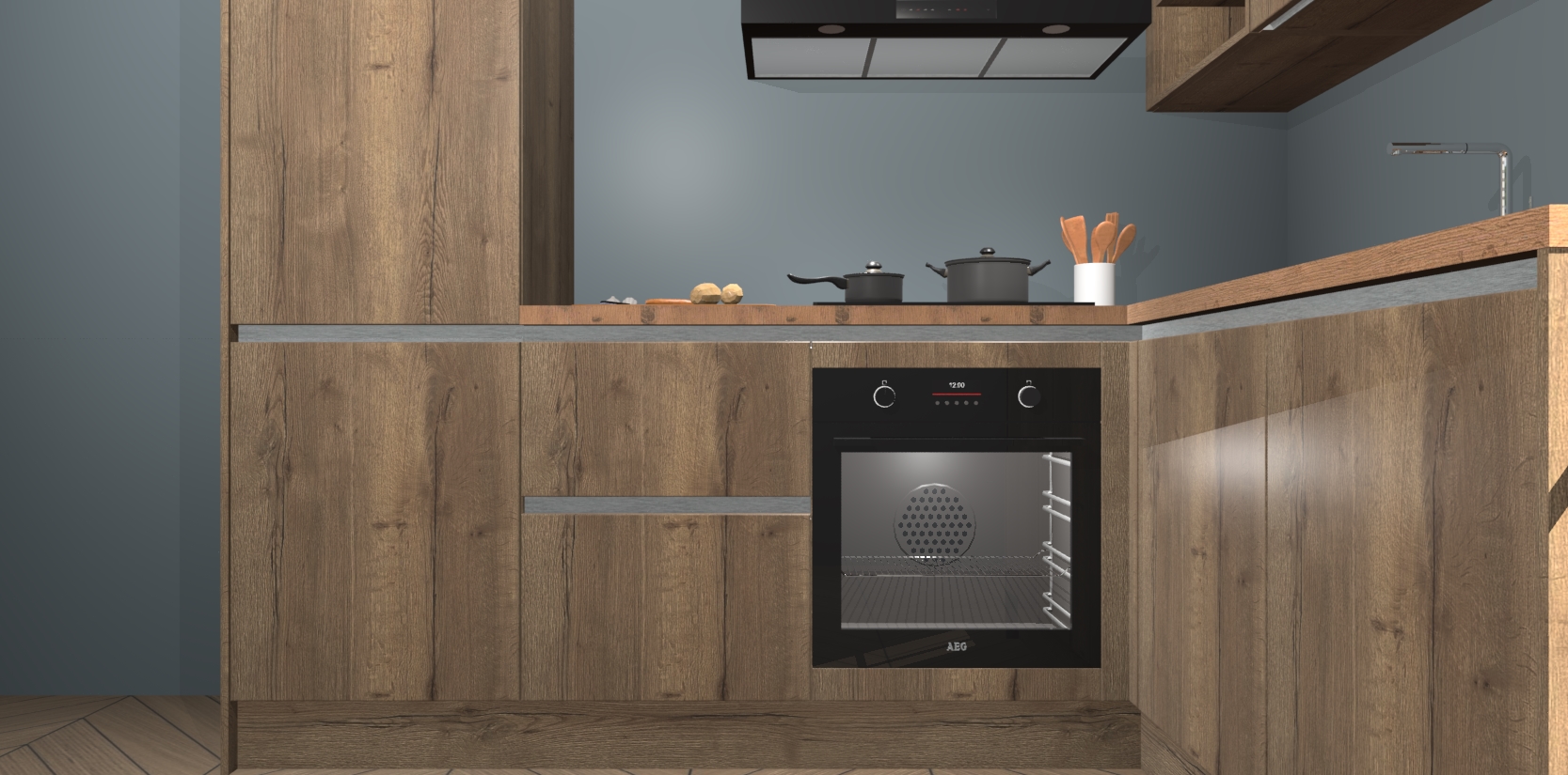 Dit model biedt u voldoende opbergruimte en vijf ingebouwde apparaten: een oven, inductiekookplaat, afzuigkap, vaatwasser en koelkast. Deze apparaten kunnen gemakkelijk worden geüpgrade naar AEG nadat u besteld heeft. De verschillende laden en kastjes bevatten softclose-deuren waardoor ze gezellig dichtvallen met een geruststellend helemaal geruisloos geluid. En dat is nog niet alles! We garanderen ook dat de prijs altijd laag blijft - dus haal nu uw Chocolade Eiken greeploze keuken Krakau terwijl het kan.