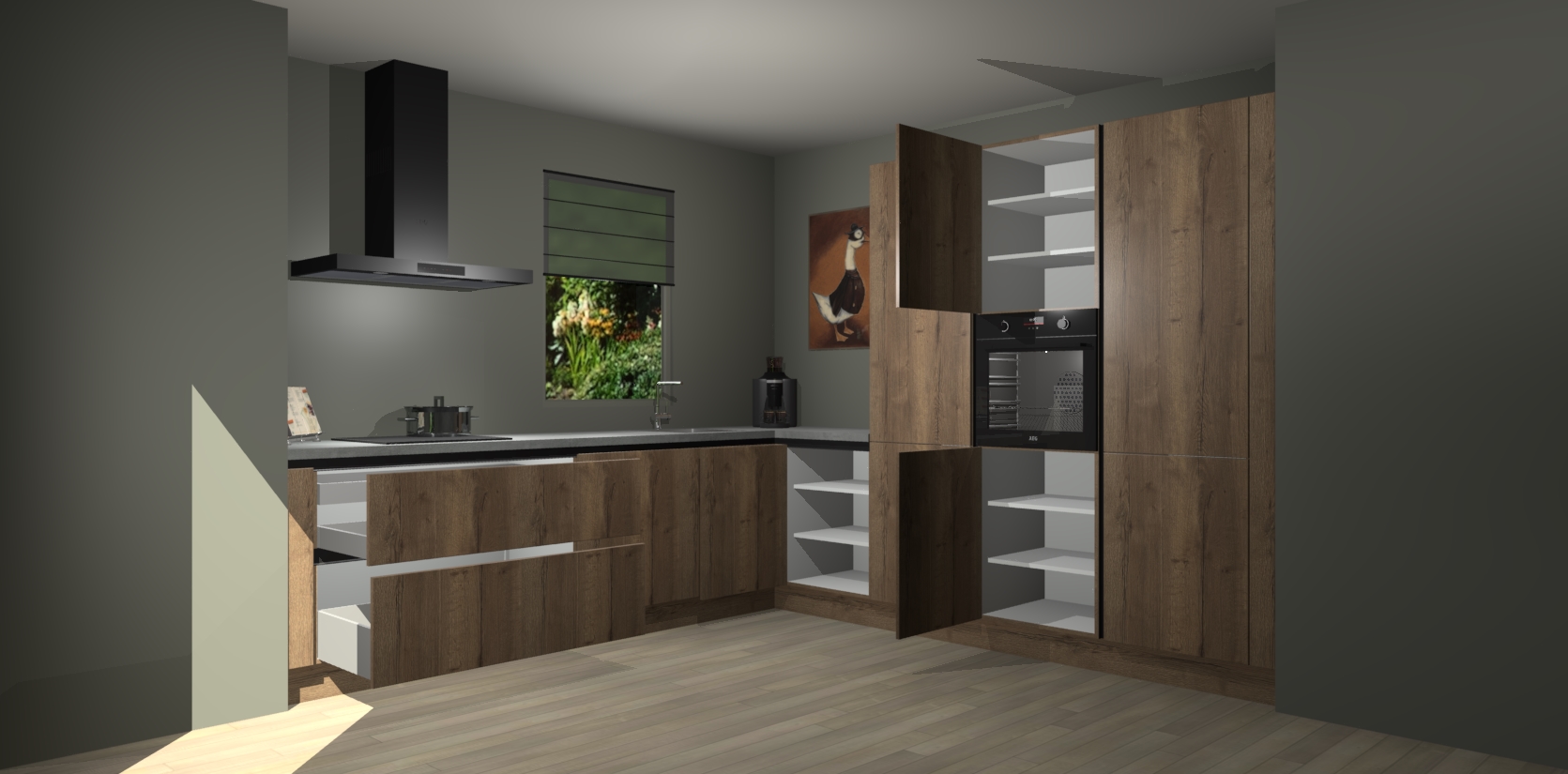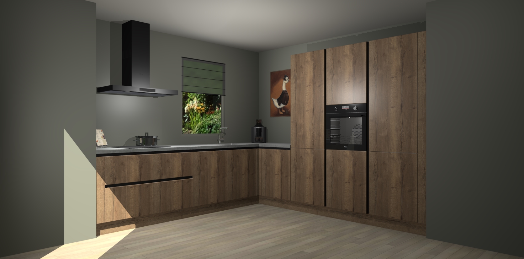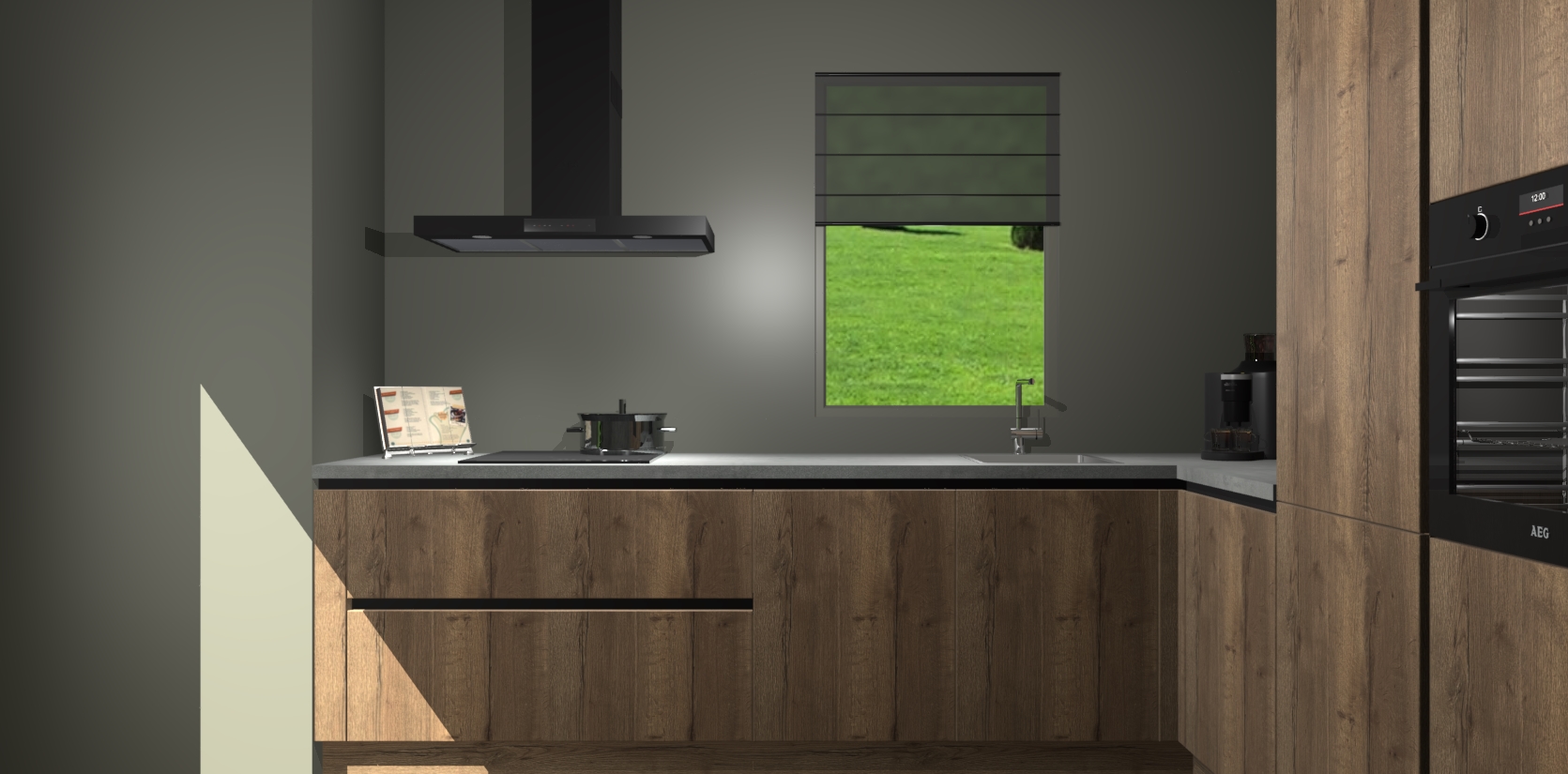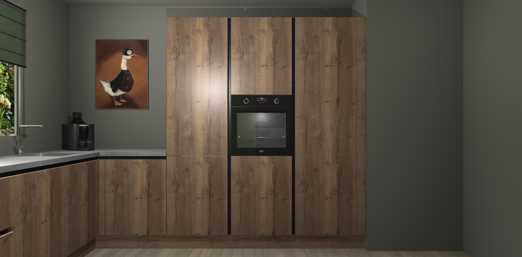 Welkom bij de Cholcolade Eiken greeploze keuken Laos. Deze prachtige keuken zal de komende jaren het middelpunt van de belangstelling in uw huis zijn. Uitgerust met vijf inbouwapparaten komt u nooit kookgereedschap tekort. Bovendien geeft de warme houtlook elke ruimte een uitnodigende en tijdloze uitstraling.