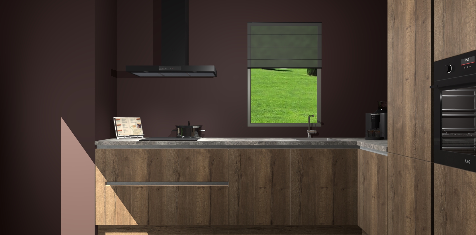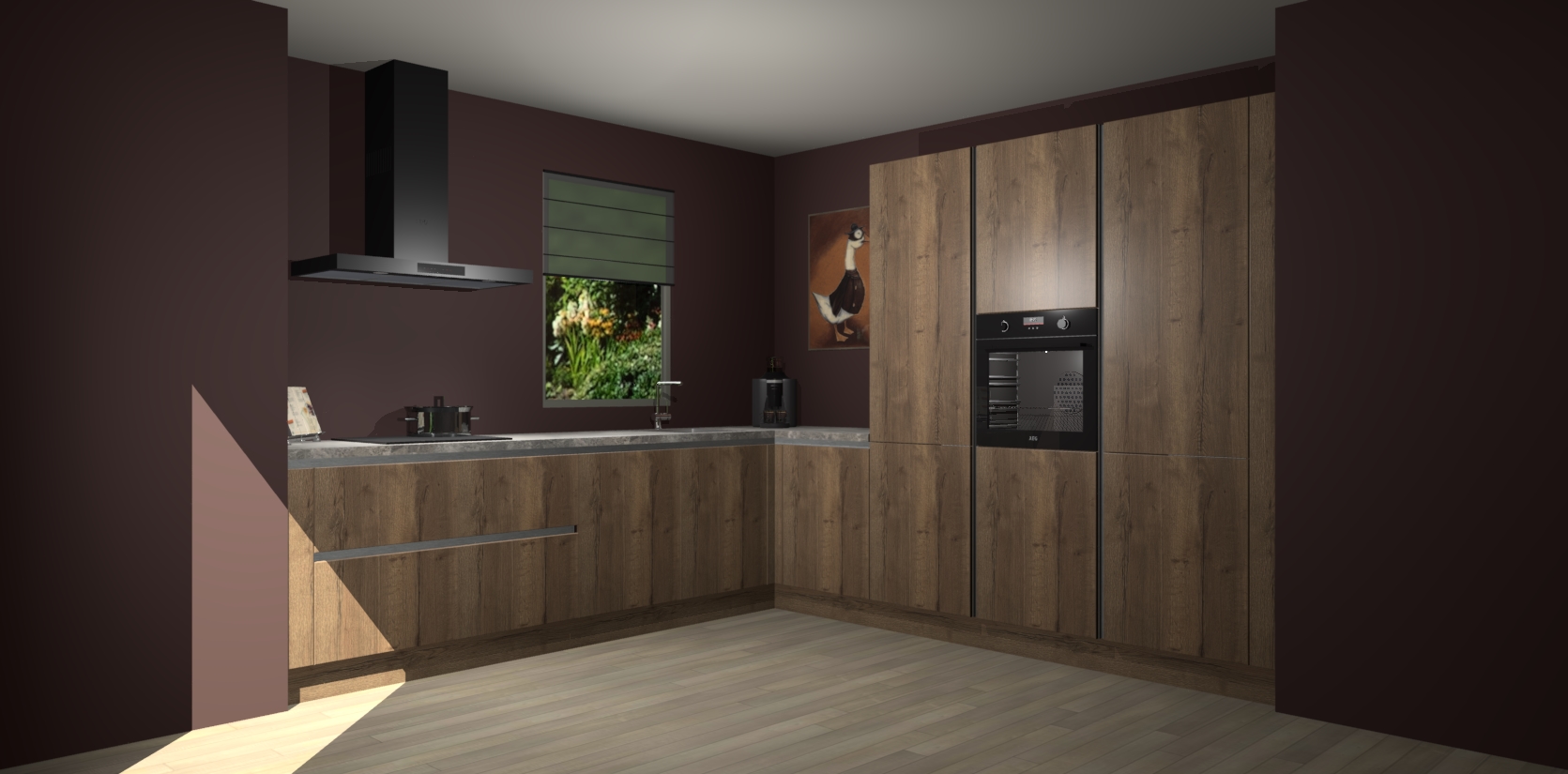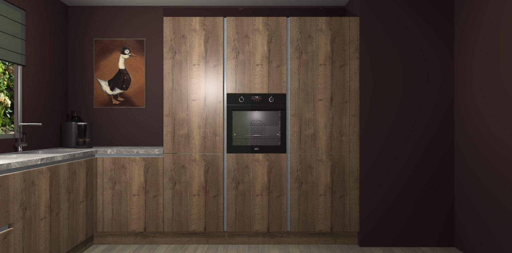 Welkom bij de Chocolade Eiken greeploze keuken Laos. Deze prachtige keuken zal de komende jaren het middelpunt van de belangstelling in uw huis zijn. Uitgerust met vijf inbouwapparaten komt u nooit kookgereedschap tekort. Bovendien geeft de warme houtlook elke ruimte een uitnodigende en tijdloze uitstraling.