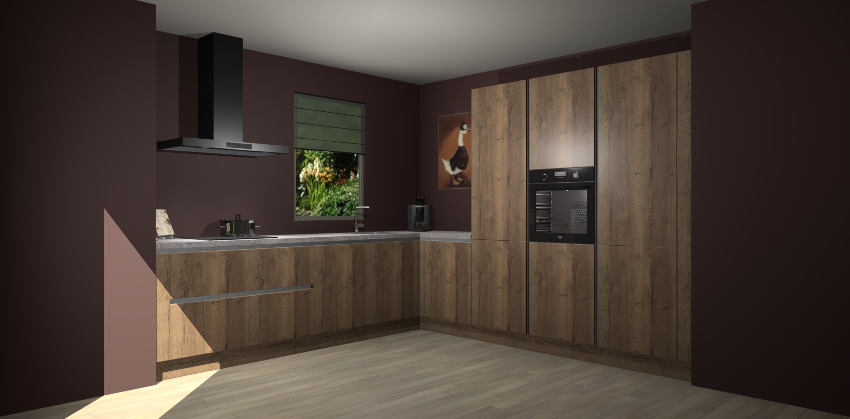 Welkom bij de Chocolade Eiken greeploze keuken Laos. Deze prachtige keuken zal de komende jaren het middelpunt van de belangstelling in uw huis zijn. Uitgerust met vijf inbouwapparaten komt u nooit kookgereedschap tekort. Bovendien geeft de warme houtlook elke ruimte een uitnodigende en tijdloze uitstraling.