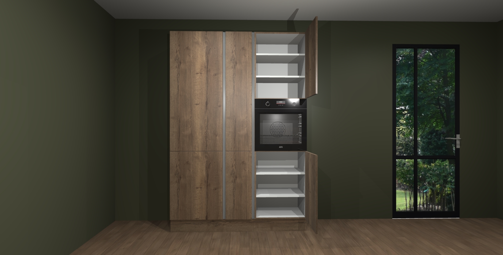 Met een modern, tijdloos design en ruime opslagruimte, zult u zich in no-time thuis voelen in uw nieuwe keuken. Uw leven wordt eenvoudiger met de soft-close deuren die voor het ultieme stille comfort zorgen - geen geluid dat u stoort terwijl u kookt. Ook is de keuken voorzien van 5 ingebouwde apparaten: een oven, inductie kookplaat, afzuigkap, vaatwasser en koelkast. Deze kunnen gemakkelijk na bestelling worden bijgewerkt naar AEG - waardoor uw luxe ervaring compleet is.