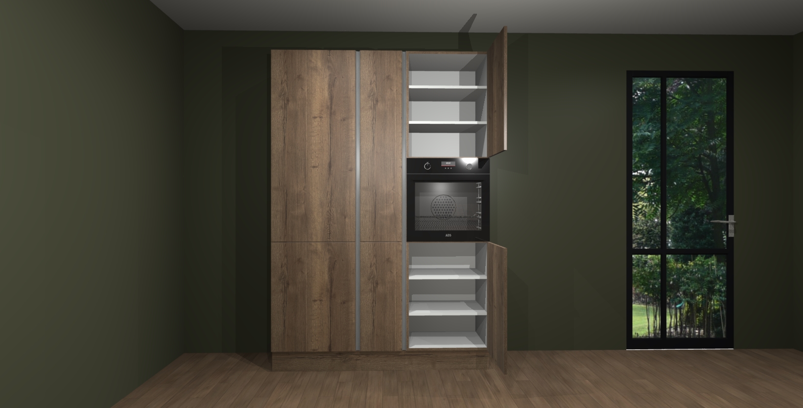 Met een modern, tijdloos design en ruime opslagruimte, zult u zich in no-time thuis voelen in uw nieuwe keuken. Uw leven wordt eenvoudiger met de soft-close deuren die voor het ultieme stille comfort zorgen - geen geluid dat u stoort terwijl u kookt. Ook is de keuken voorzien van 5 ingebouwde apparaten: een oven, inductie kookplaat, afzuigkap, vaatwasser en koelkast. Deze kunnen gemakkelijk na bestelling worden bijgewerkt naar AEG - waardoor uw luxe ervaring compleet is.