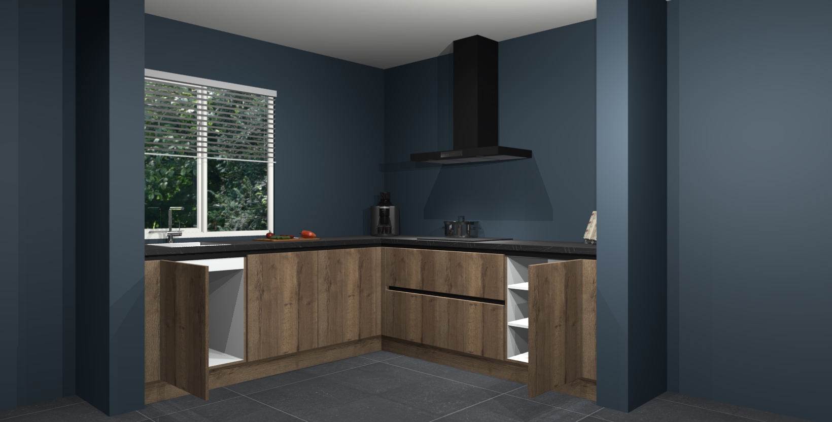 In deze box zijn alle kleuren verzameld van de deuren en werkbladen. Vraag de gratis kleurenbox aan en kijk thuis rustig verder!