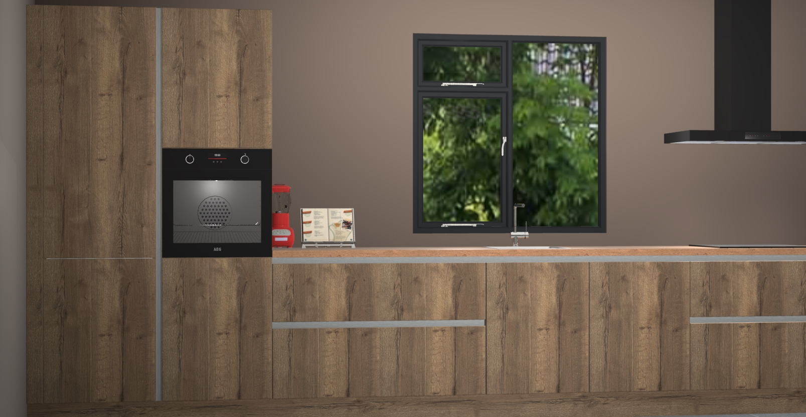 De Chocolade eiken keuken Lille wordt geleverd met vijf inbouwapparaten - een oven, inductiekookplaat, afzuigkap, vaatwasser en koelkast. Maar dat is nog niet alles! Na bestelling kunnen deze apparaten eenvoudig worden geüpgraded naar premium AEG-apparatuur. Bovendien is er zelfs de optie om de oven te vervangen door een combimagnetron of uw inductiekookplaat te vervangen door een kookplaat met geïntegreerde afzuiging.