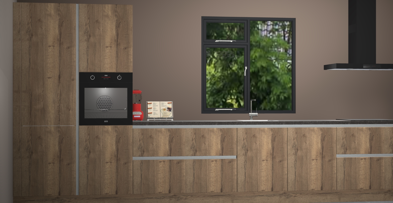 De Chocolade eiken keuken Lille wordt geleverd met vijf inbouwapparaten - een oven, inductiekookplaat, afzuigkap, vaatwasser en koelkast. Maar dat is nog niet alles! Na bestelling kunnen deze apparaten eenvoudig worden geüpgraded naar premium AEG-apparatuur. Bovendien is er zelfs de optie om de oven te vervangen door een combimagnetron of uw inductiekookplaat te vervangen door een kookplaat met geïntegreerde afzuiging.