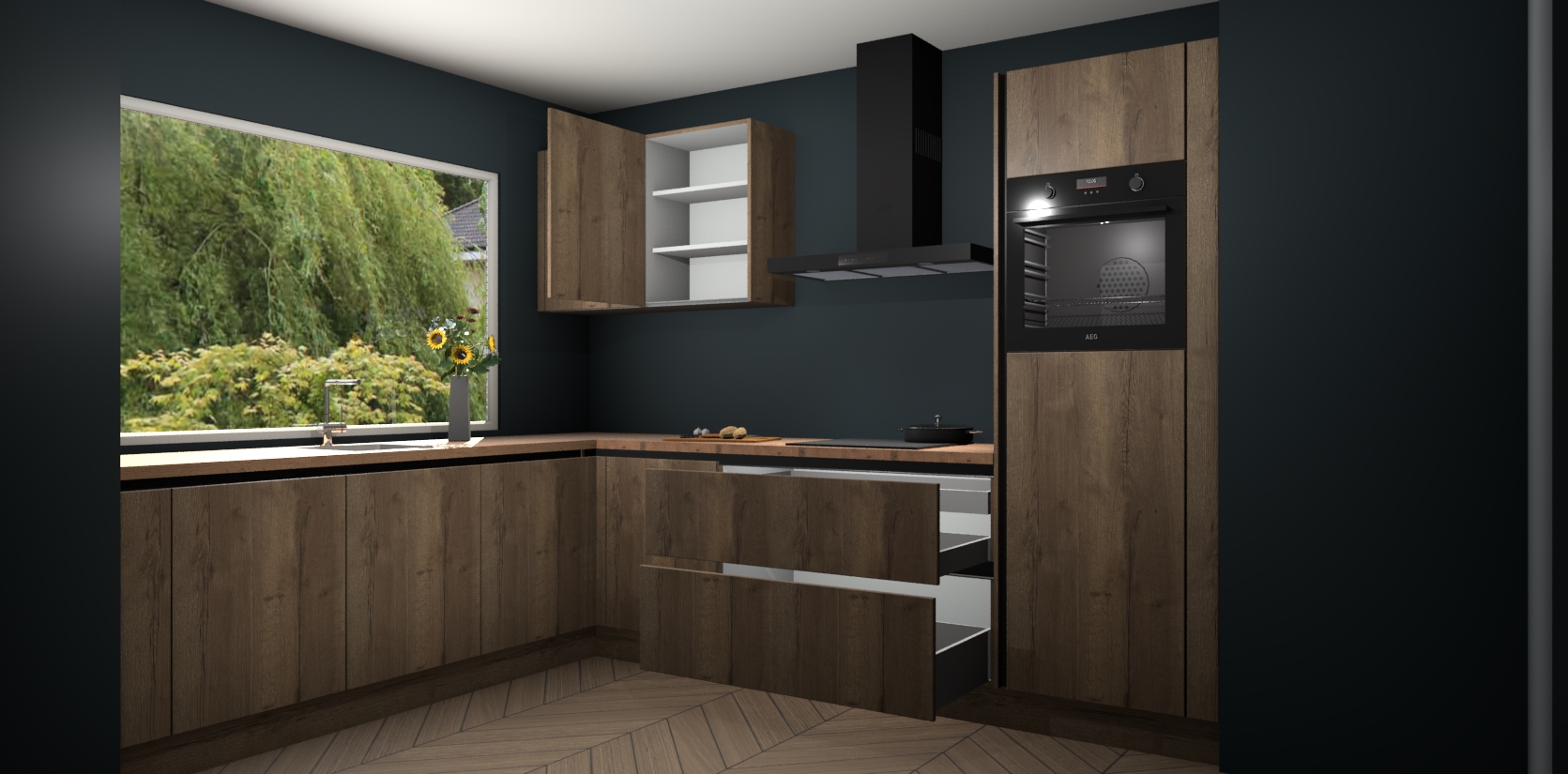 Bent u op zoek naar een onberispelijk keukenontwerp dat Duitse precisie en uitmuntende architectuur ademt? Zoek niet verder - de chocolade-eiken