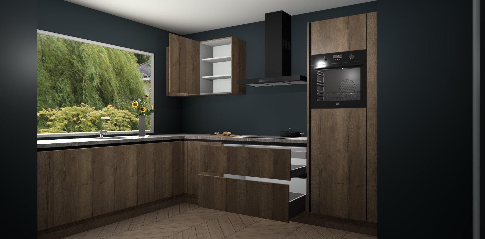 Bent u op zoek naar een onberispelijk keukenontwerp dat Duitse precisie en uitmuntende architectuur ademt? Zoek niet verder - de chocolade-eiken