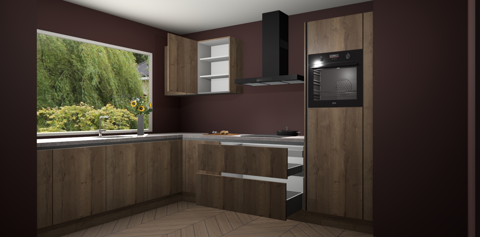 Bent u op zoek naar een onberispelijk keukenontwerp dat Duitse precisie en uitmuntende architectuur ademt? Zoek niet verder - de chocolade eiken greeploze keuken Limonos biedt de perfecte moderne mix van stijl en functionaliteit.