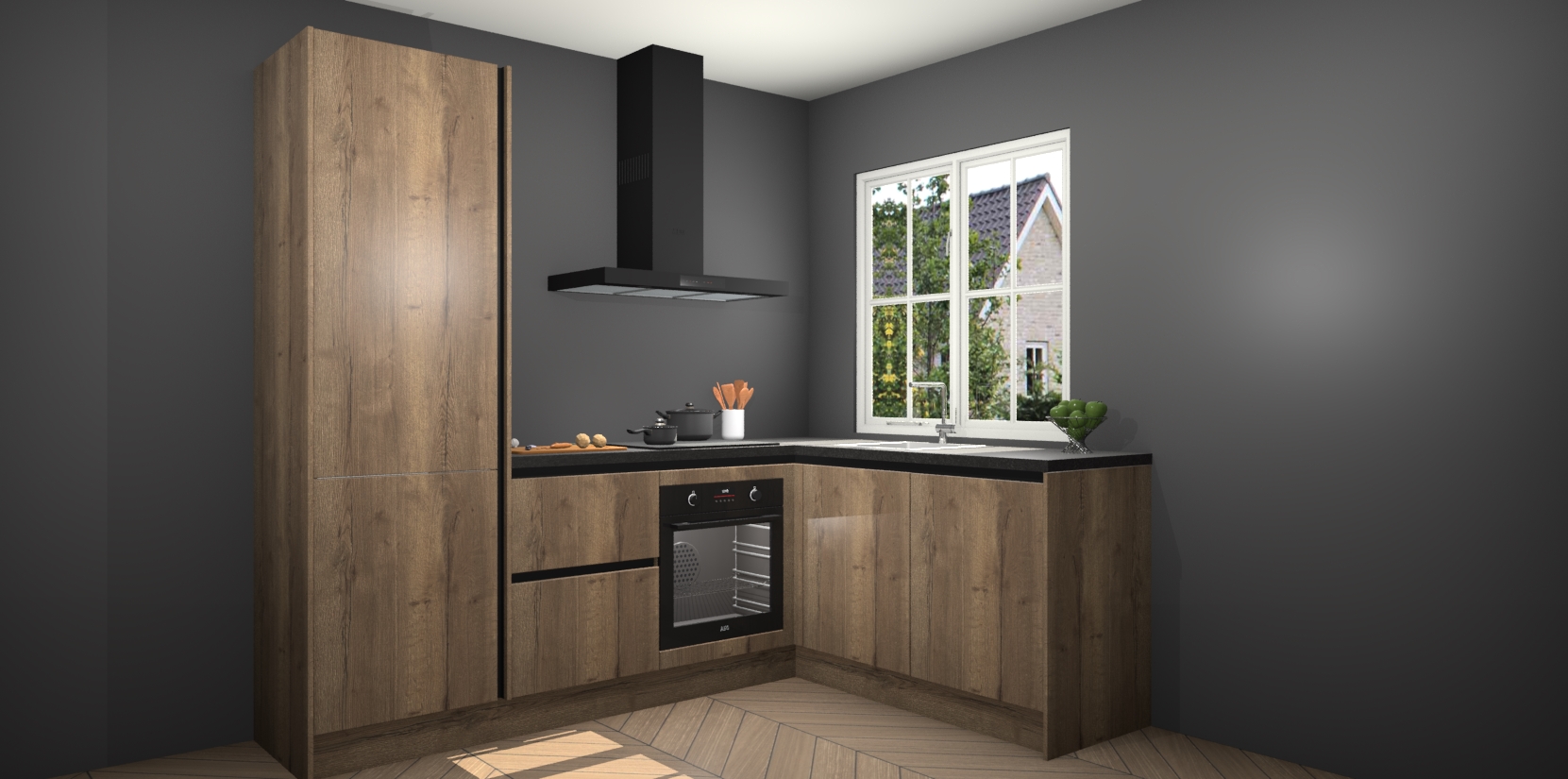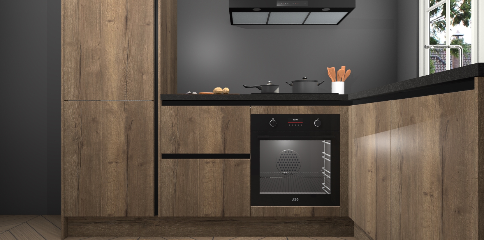 Met de Chocolade Eiken greeploze keuken Linz krijgt u 5 op maat gemaakte apparaten: een oven, inductiekookplaat, afzuigkap, vaatwasser en koelkast die na bestelling makkelijk worden geüpgraded naar AEG-producten. Met de zacht sluitende deuren, bent u verzekerd van eenvoudige bediening in stilte. Het kastmeubilair wordt alvast pre-assemblage geleverd waardoor u sneller met het installeren begint. Ook zijn alle deuren voorzien van softclose zodat er geen sporen op de lade blijven als u ze dicht doet. Bovendien hoeft u bij ons geen twijfels of verassingen te hebben: we hebben een vaste lage prijs waardoor u weet wat u mag verwachten bij elke bestelling.