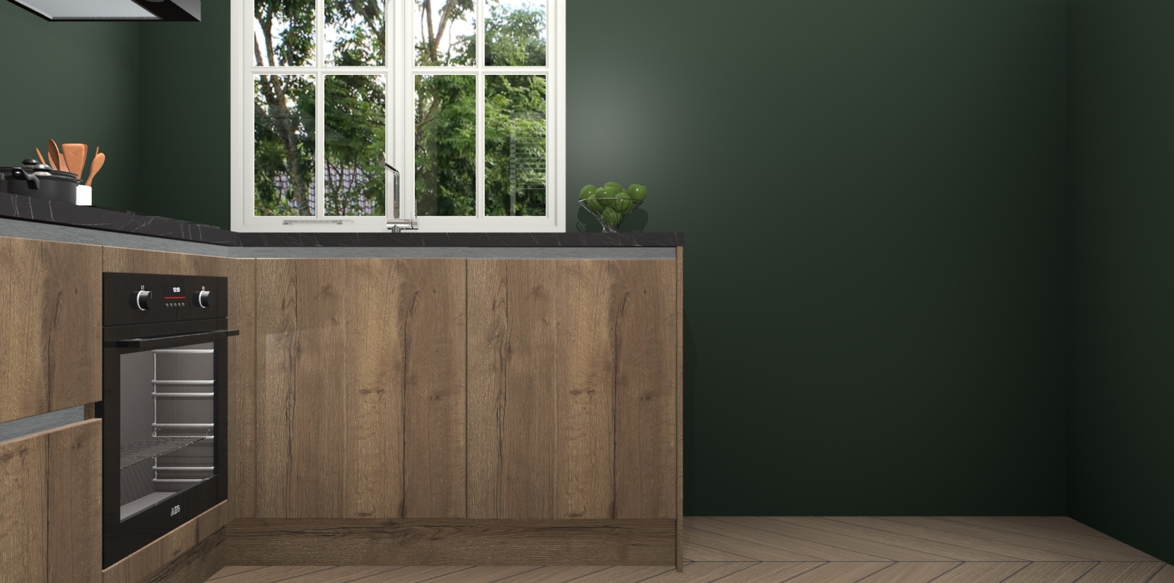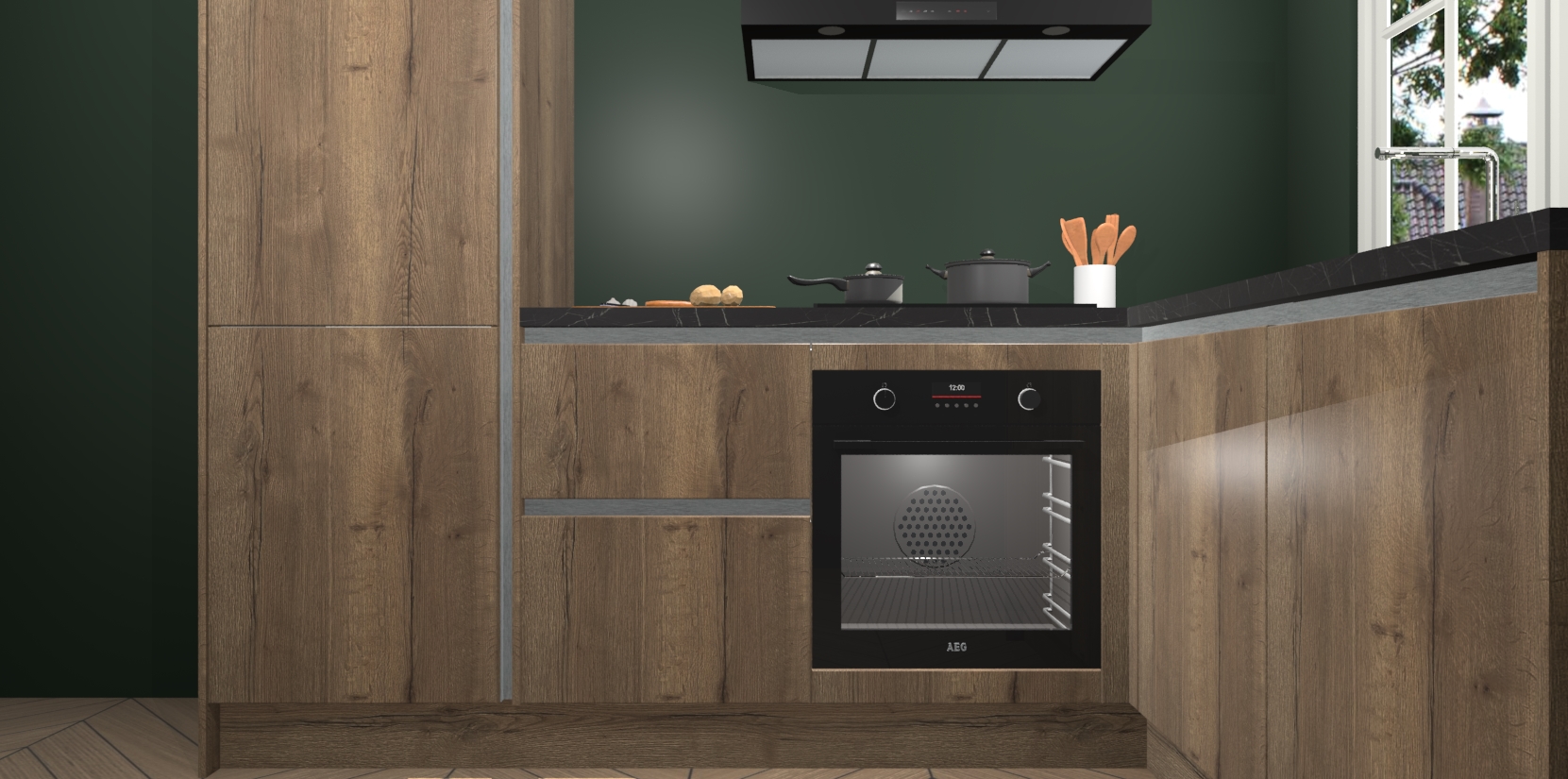 Met de Chocolade Eiken greeploze keuken Linz krijgt u 5 op maat gemaakte apparaten: een oven, inductiekookplaat, afzuigkap, vaatwasser en koelkast die na bestelling makkelijk worden geüpgraded naar AEG-producten. Met de zacht sluitende deuren, bent u verzekerd van eenvoudige bediening in stilte. Het kastmeubilair wordt alvast pre-assemblage geleverd waardoor u sneller met het installeren begint. Ook zijn alle deuren voorzien van softclose zodat er geen sporen op de lade blijven als u ze dicht doet. Bovendien hoeft u bij ons geen twijfels of verassingen te hebben: we hebben een vaste lage prijs waardoor u weet wat u mag verwachten bij elke bestelling.