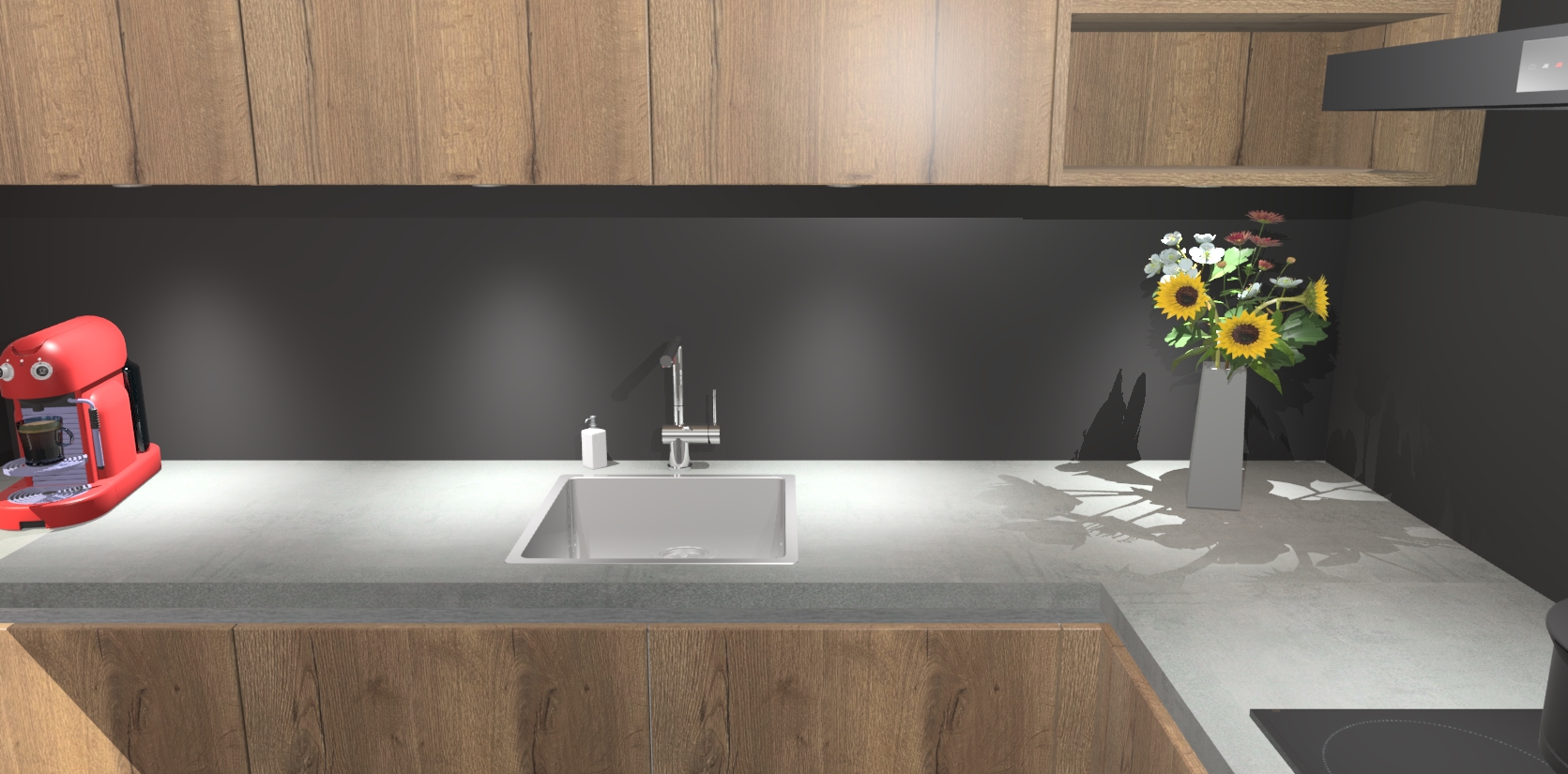 • Bij een hoekwerkblad zijn de hoeken in gevreesd en op maat gemaakt