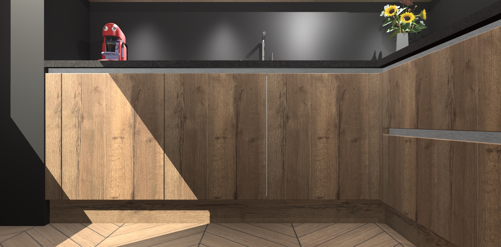 Inclusief plinten, stelpoten en werkblad