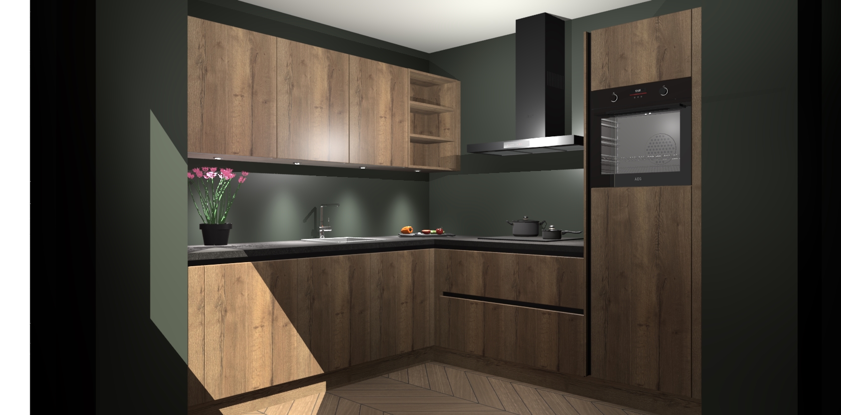 Met een modern, tijdloos design en ruime opslagruimte, zult u zich in no-time thuis voelen in uw nieuwe keuken. Uw leven wordt eenvoudiger met de soft-close deuren die voor het ultieme stille comfort zorgen - geen geluid dat u stoort terwijl u kookt. Ook is de keuken voorzien van 5 ingebouwde apparaten: een oven, inductie kookplaat, afzuigkap, vaatwasser en koelkast. Deze kunnen gemakkelijk na bestelling worden bijgewerkt naar AEG - waardoor uw luxe ervaring compleet is.