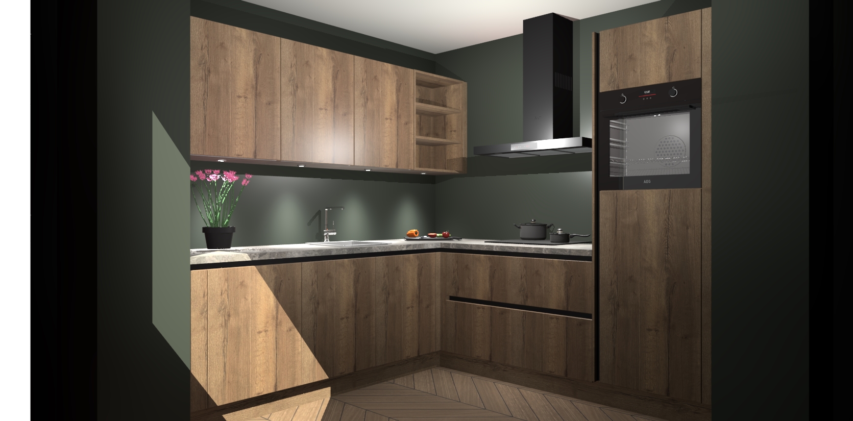 Met een modern, tijdloos design en ruime opslagruimte, zult u zich in no-time thuis voelen in uw nieuwe keuken. Uw leven wordt eenvoudiger met de soft-close deuren die voor het ultieme stille comfort zorgen - geen geluid dat u stoort terwijl u kookt. Ook is de keuken voorzien van 5 ingebouwde apparaten: een oven, inductie kookplaat, afzuigkap, vaatwasser en koelkast. Deze kunnen gemakkelijk na bestelling worden bijgewerkt naar AEG - waardoor uw luxe ervaring compleet is.