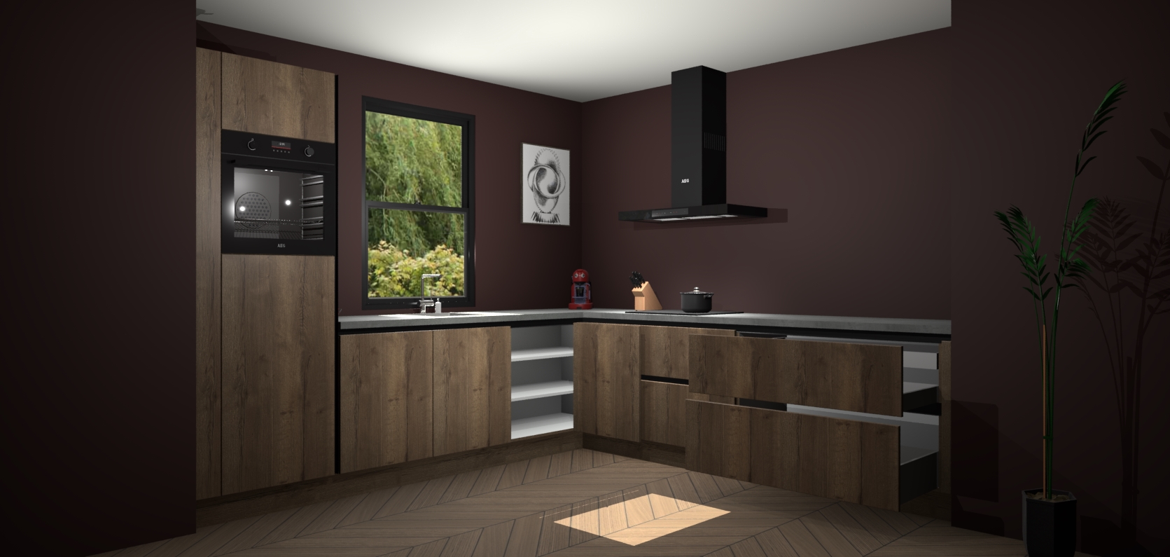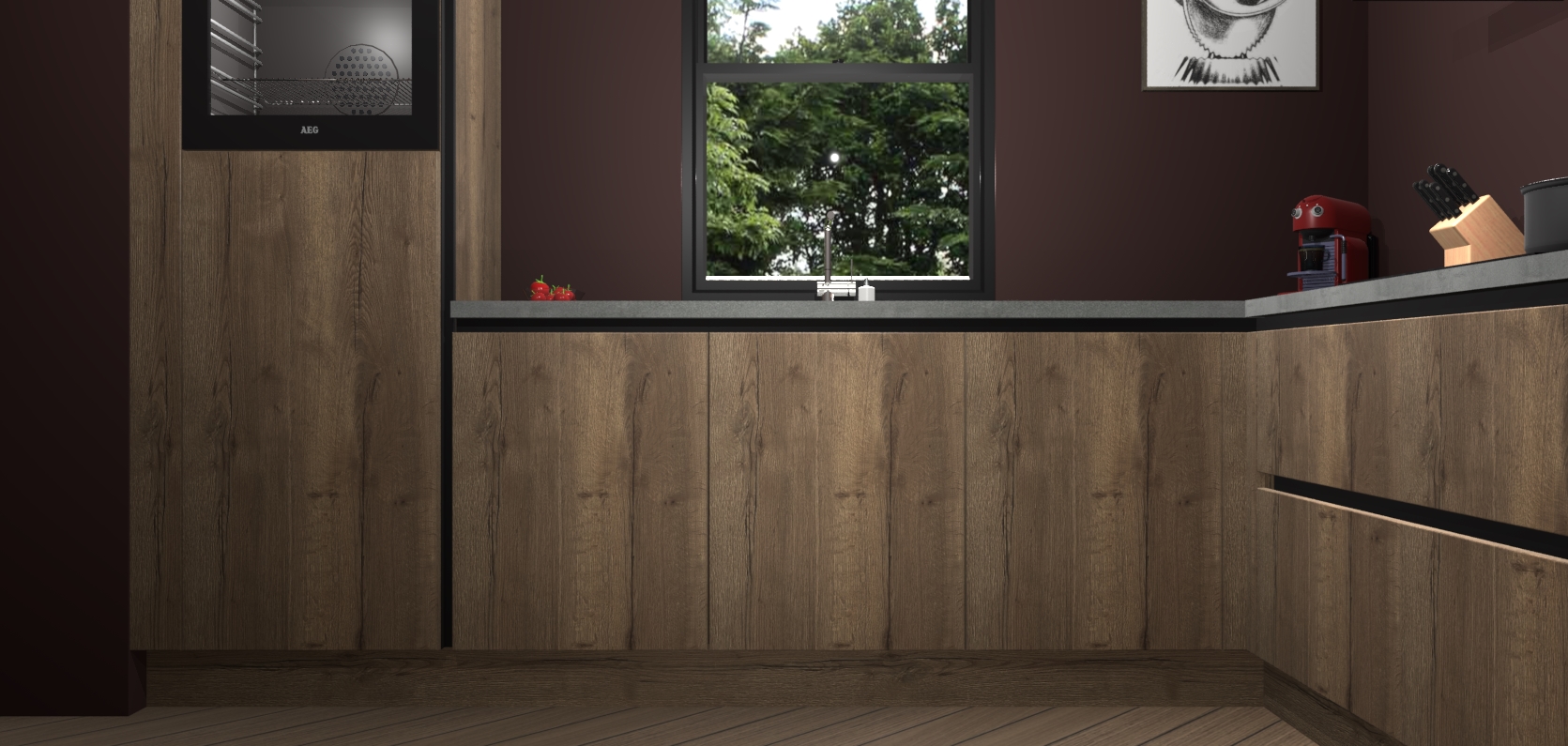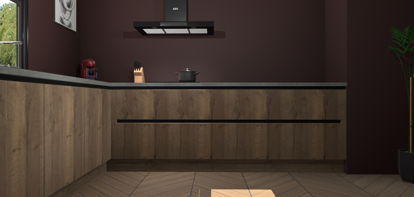 Welkom bij de chocolade eiken greeploze keuken Lublin. Deze prachtige keuken zal de komende jaren het middelpunt van de belangstelling in uw huis zijn. Uitgerust met vijf inbouwapparaten komt u nooit kookgereedschap tekort. Bovendien geeft de warme houtlook elke ruimte een uitnodigende en tijdloze uitstraling.
