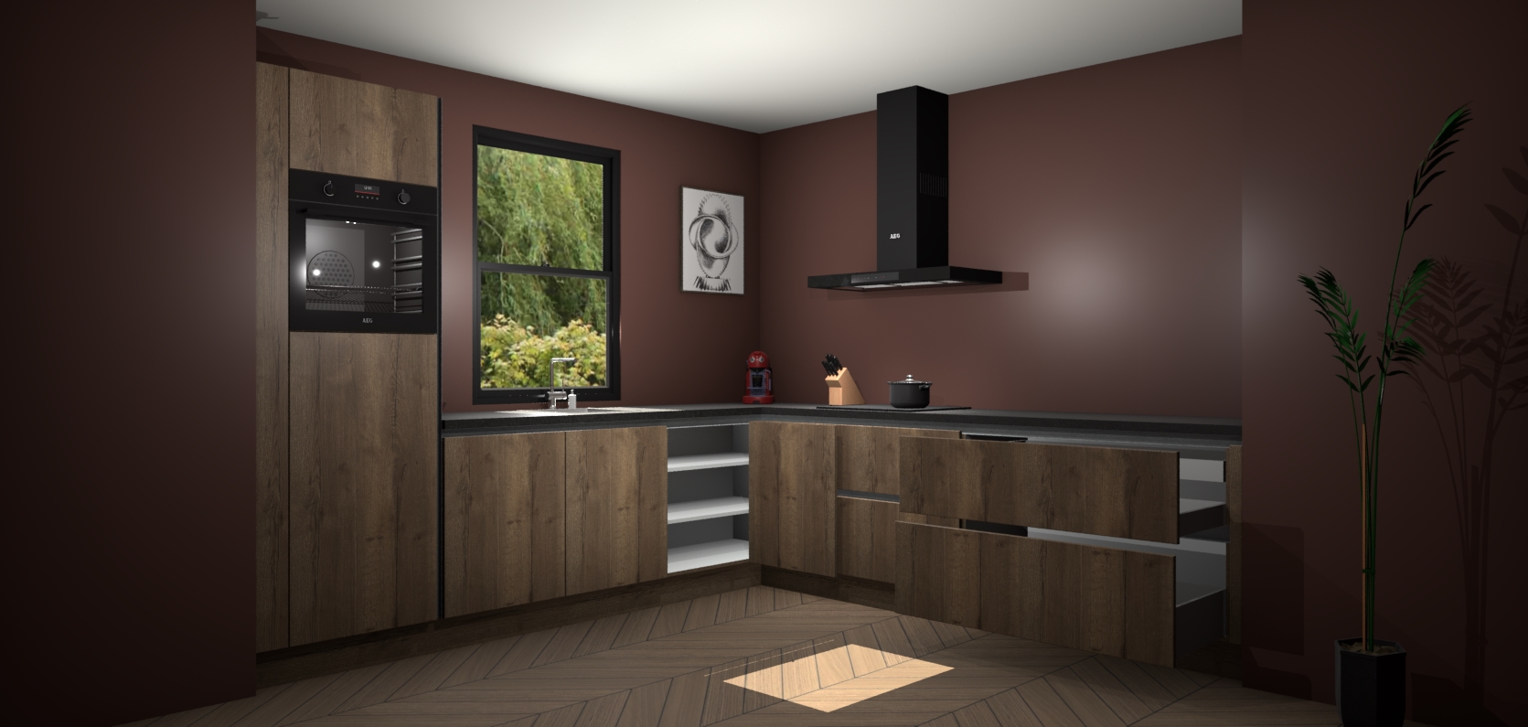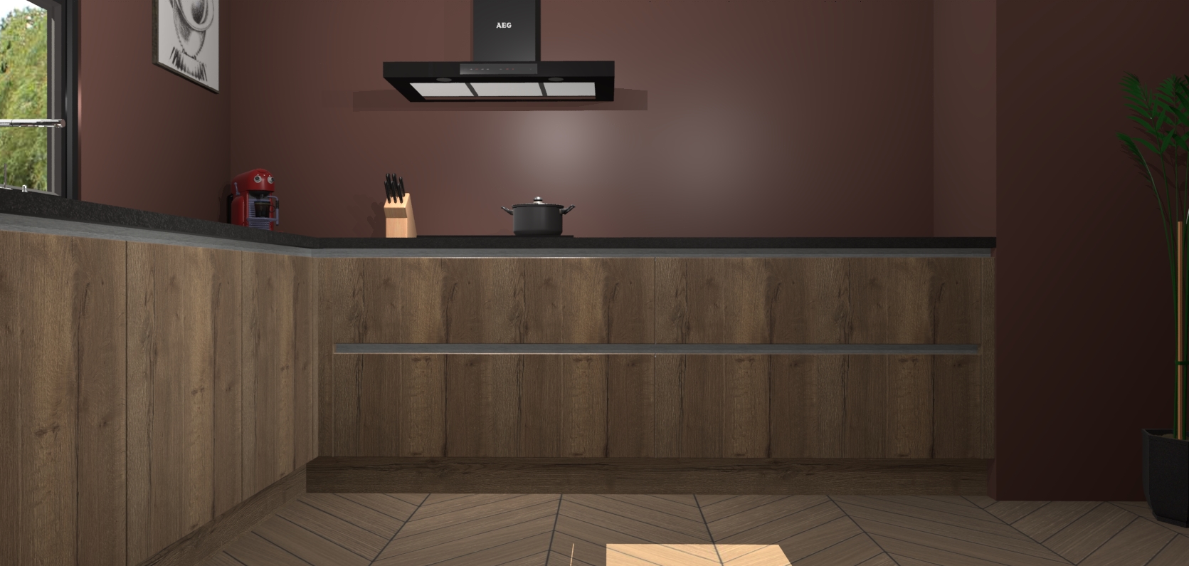 Welkom bij de chocolade eiken greeploze keuken Lublin. Deze prachtige keuken zal de komende jaren het middelpunt van de belangstelling in uw huis zijn. Uitgerust met vijf inbouwapparaten komt u nooit kookgereedschap tekort. Bovendien geeft de warme houtlook elke ruimte een uitnodigende en tijdloze uitstraling.